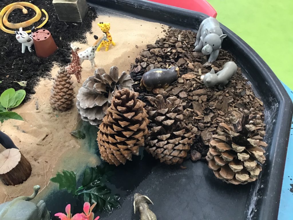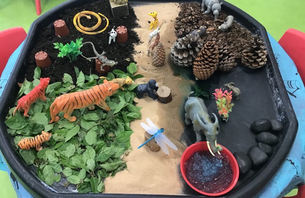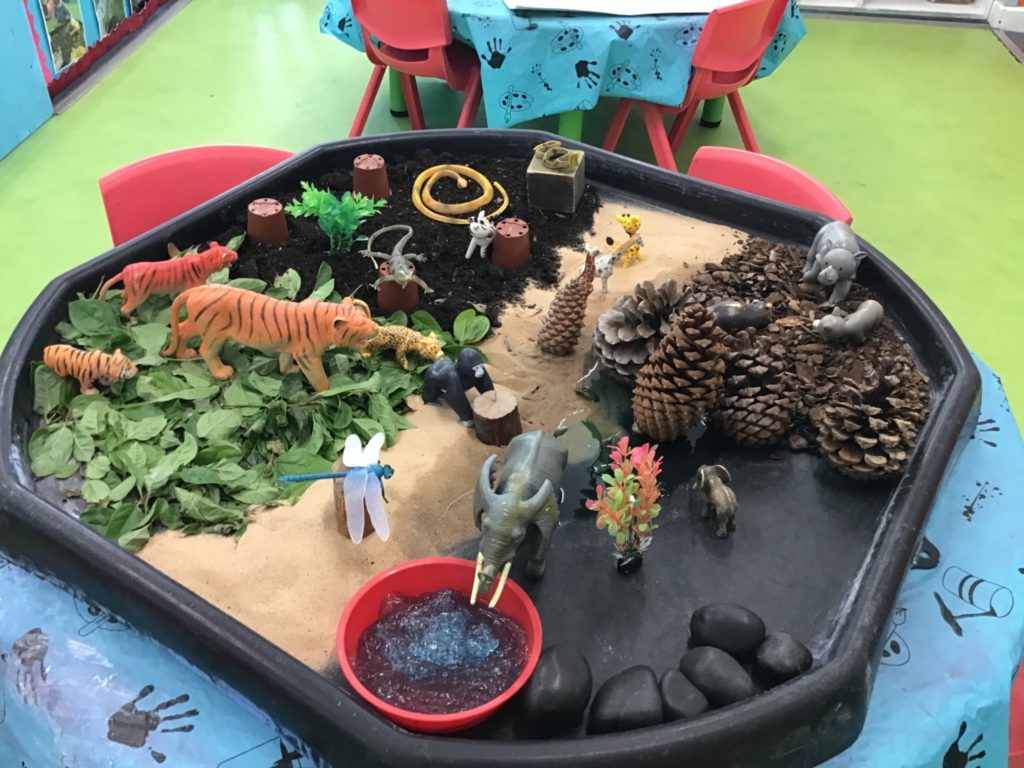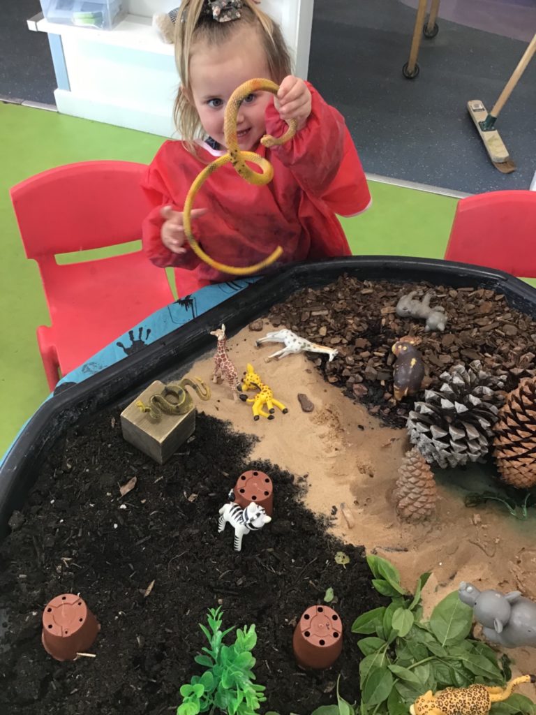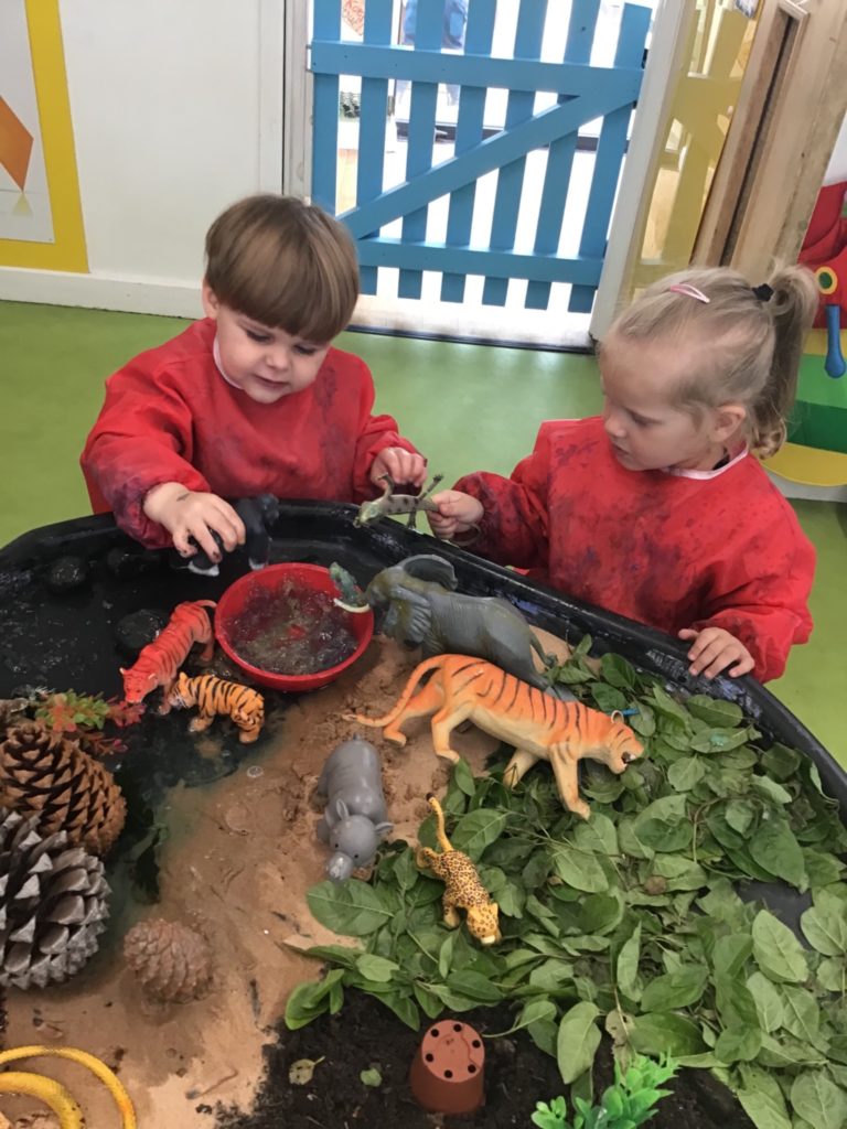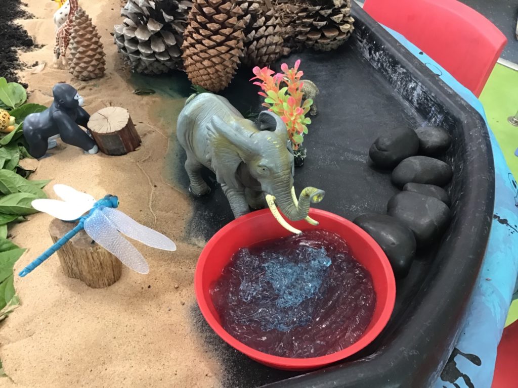 As part of our Adventures topic, the Peter Rabbits have been exploring the jungle using the tuff spot which Miss Elli transformed into a series of animal habitats.