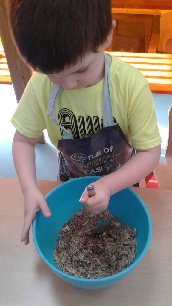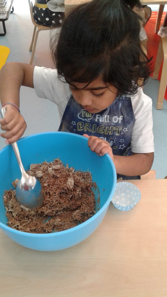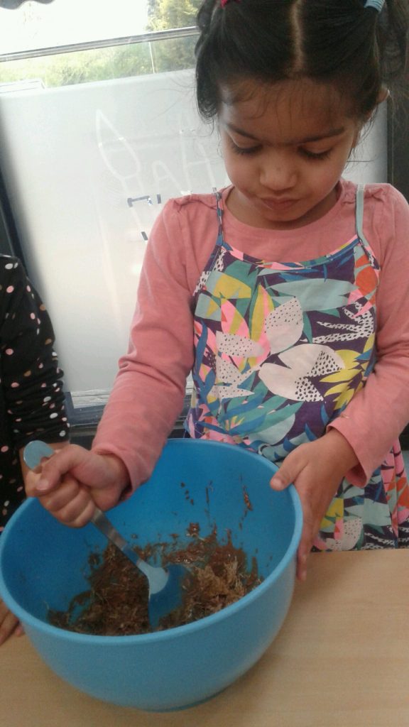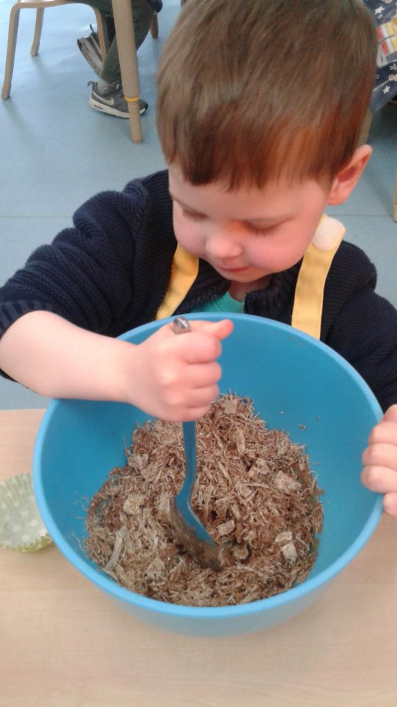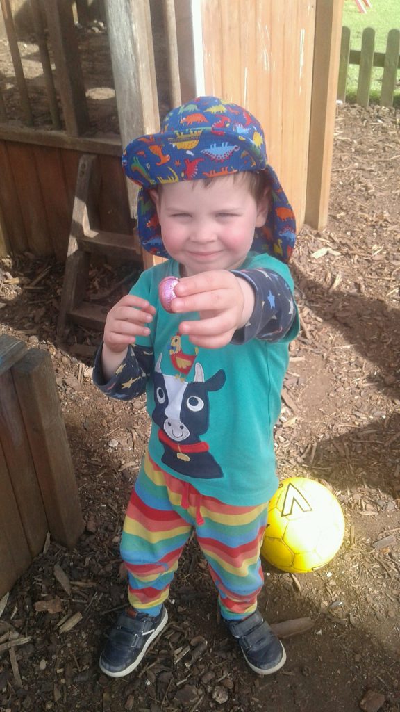 They’ve been making chocolate Easter nests and Easter cards. They children also had a great time going on an Easter egg hunt and finally we finished off with an Easter bonnet parade this afternoon!