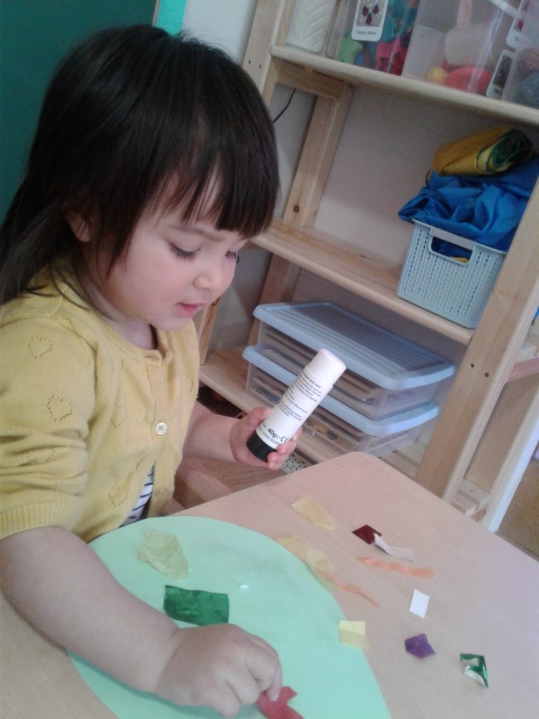 Decorating our giant Easter eggs required so much concentration as we cut and glued shapes onto our eggs.