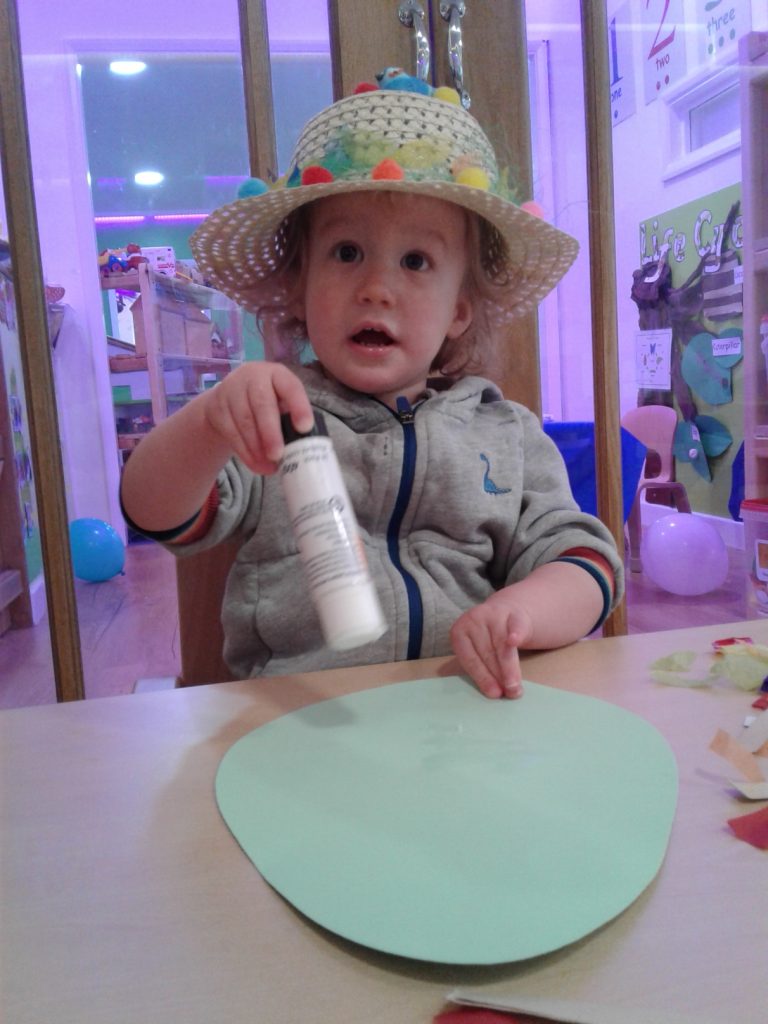 The nursery took on a real Easter flavour when the children arrived with their splendid Easter bonnets. They all looked magnificent and the children were keen to share their bonnets with their friends which led to plenty of lively chatter.