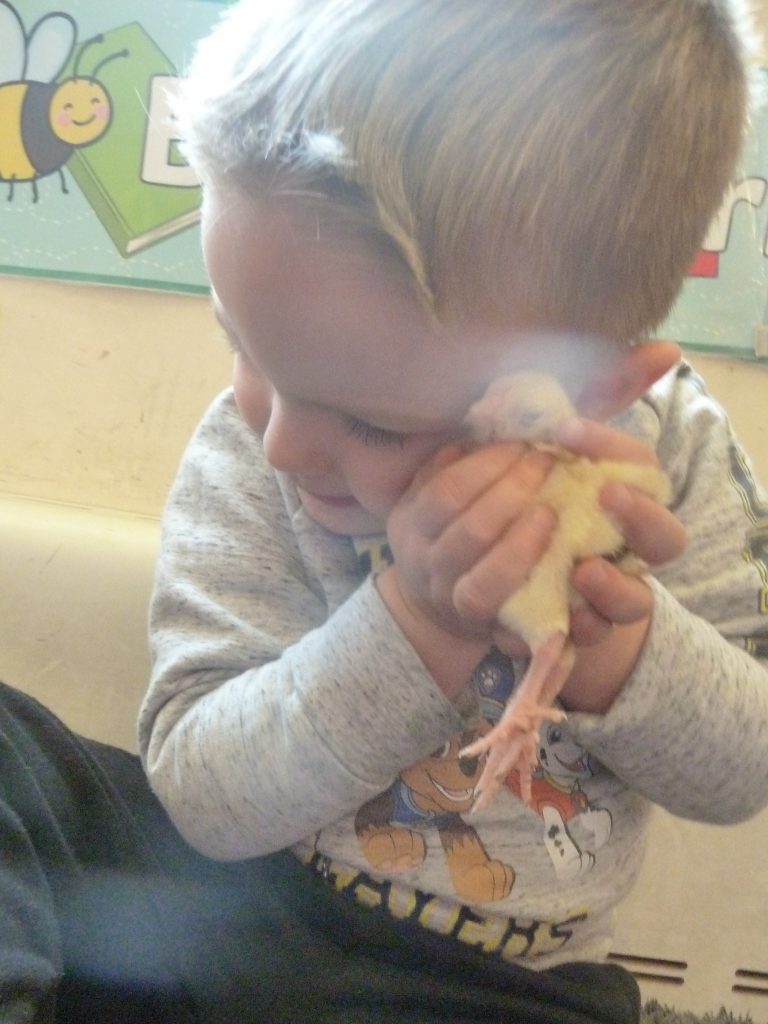 Handling the chicks was a very special opportunity for the children and they were so careful, gently giving the chicks some lovely cuddles.