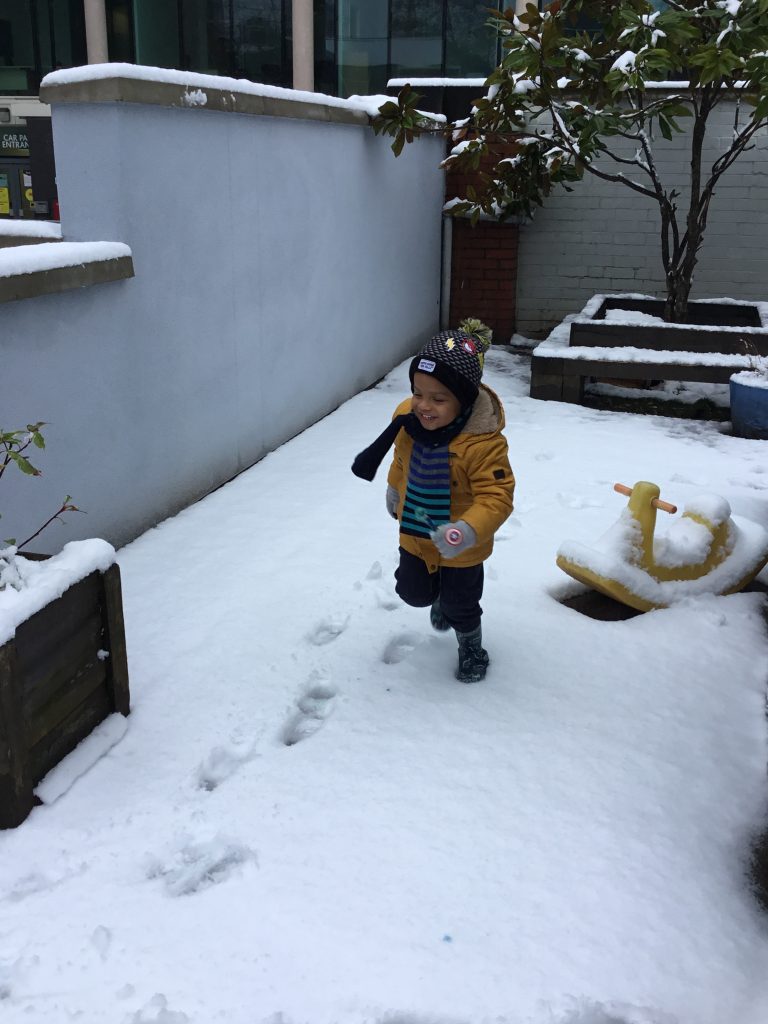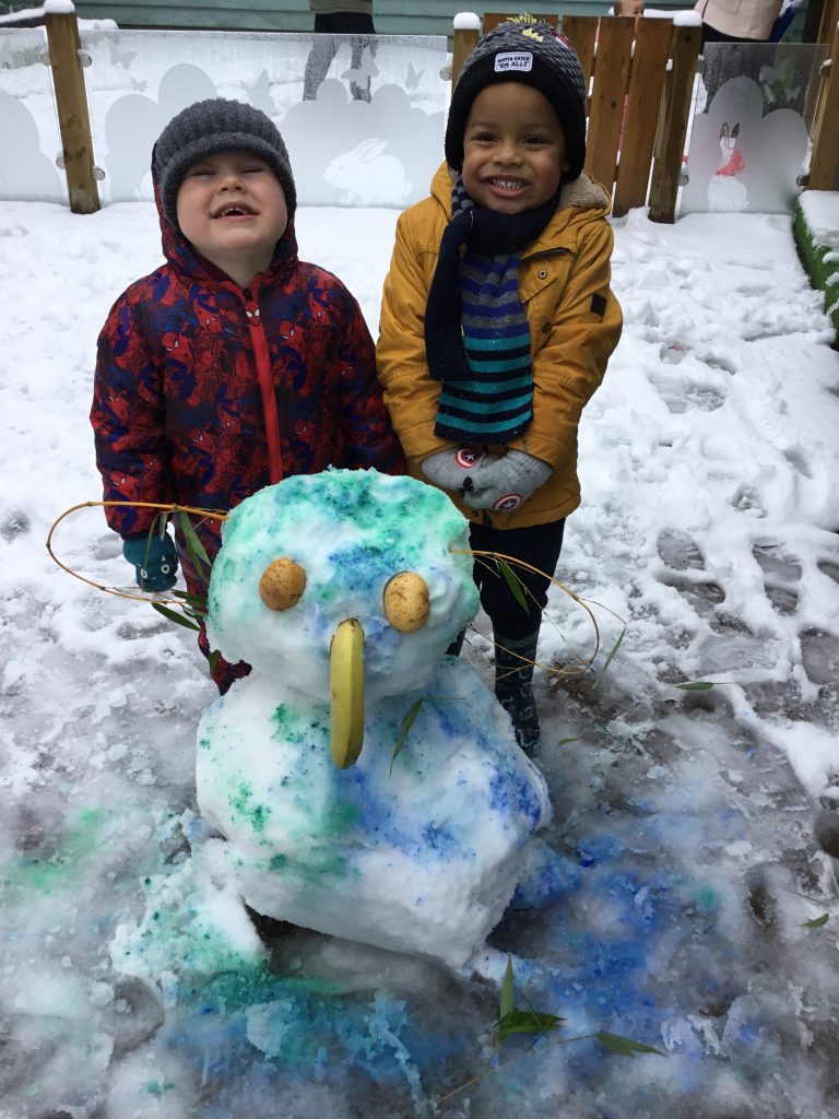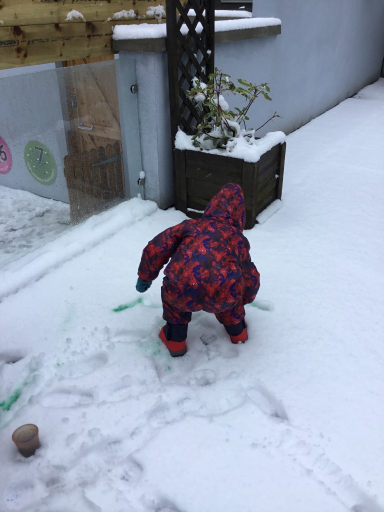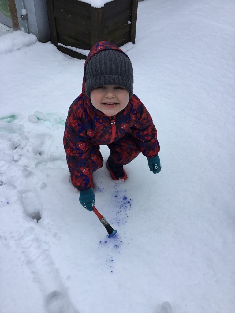 Early years have loved playing in the snow. We made the snow into magic rainbow snow and loved watching the paint dissolve and turn the snow into a rainbow.