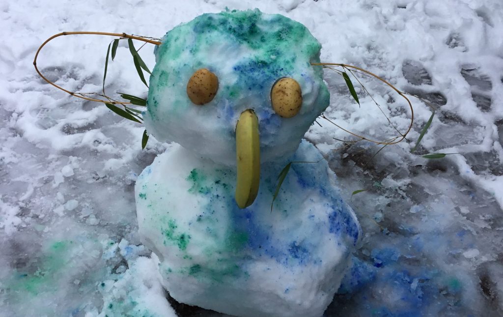 This then led us into making our very own Elmer the snow elephant. With a banana for his trunk and potato eyes, twigs for huge ears and coloured in blue and green, our Elmer was so much fun to make! What a fun day!