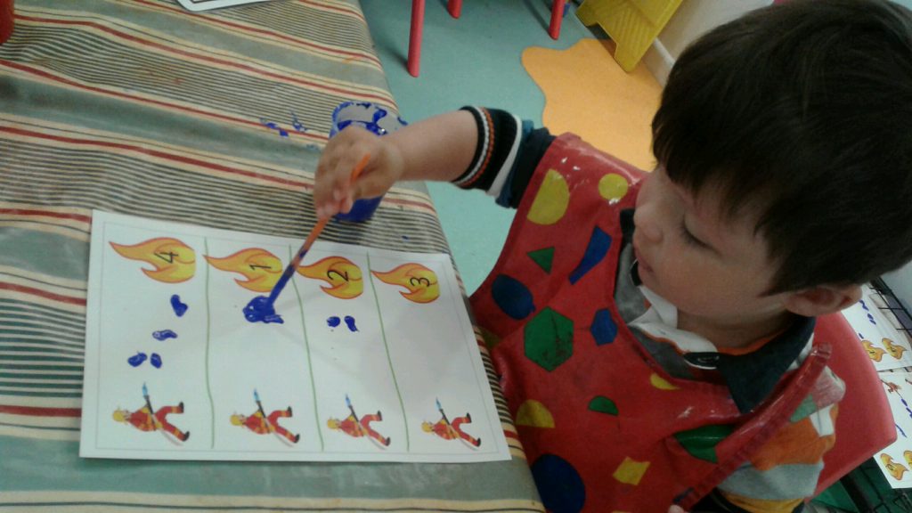 The children’s favourite activity last week was pretending to be firefighter and putting out the number flames using the hose pipe!