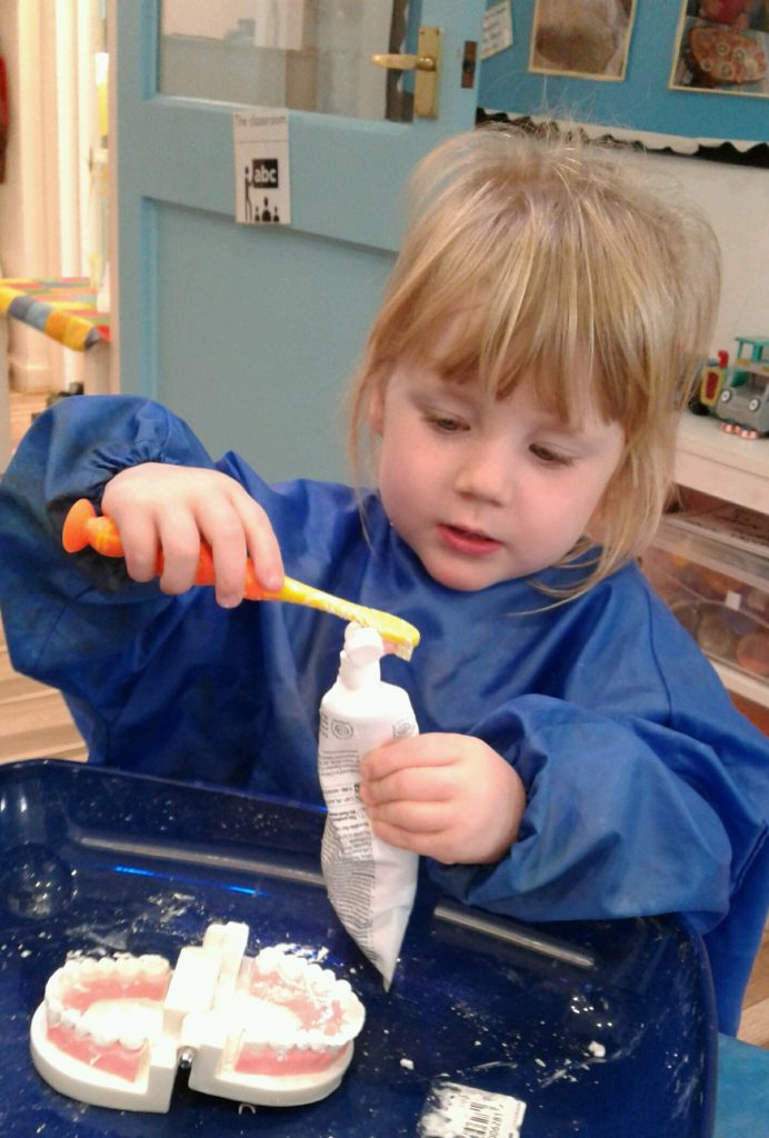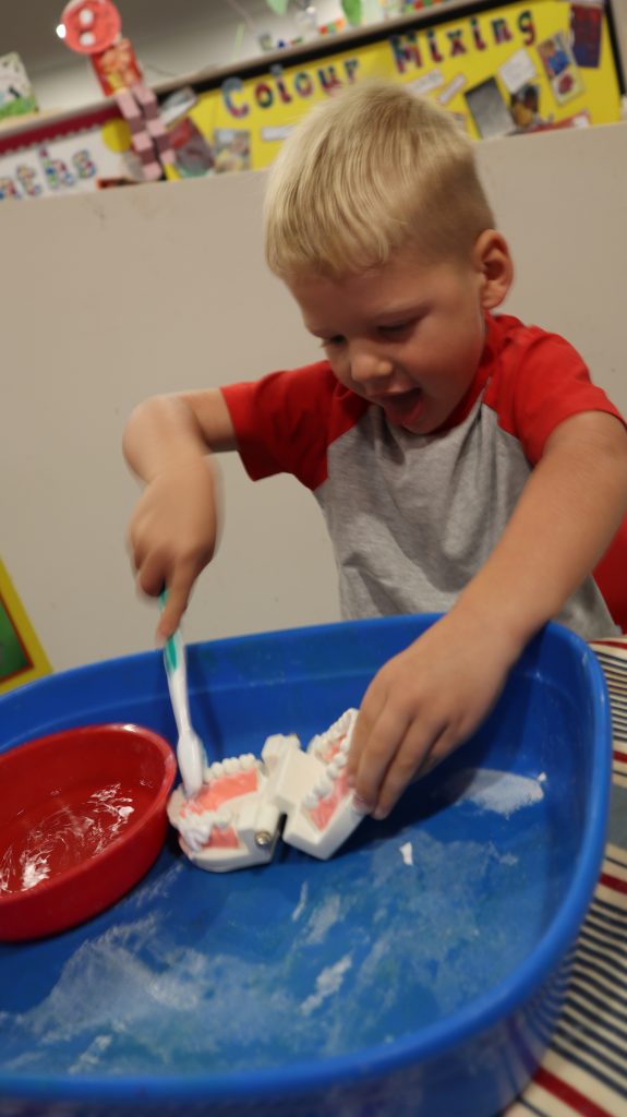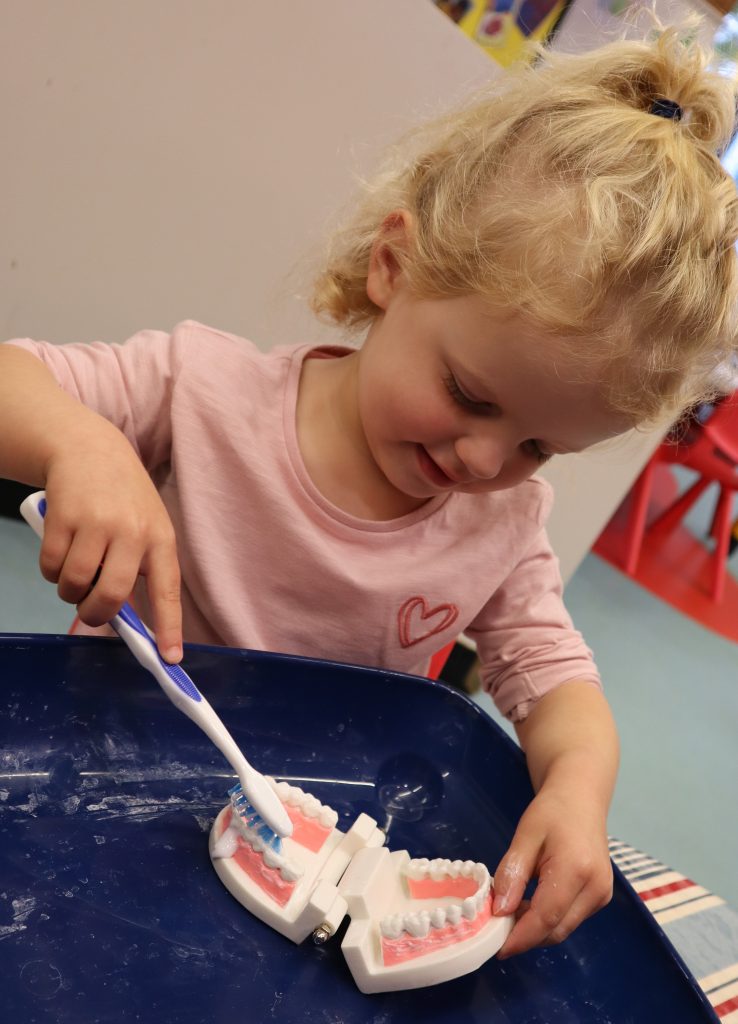 While learning about the importance of dental hygiene, our teeth brushing activity gave the children the opportunity to practise their brushing skills on a set of teeth.