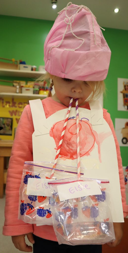 Lastly, they made their digestive system. Learning about bowel movements was by far the children’s favourite part of this activity! The children used a tube and stuck it to their cardboard bodies to represent the “food pipe” better known as the oesophagus. We then demonstrated what happened to the stomach when the food travelled down the oesophagus into the stomach, using a balloon showing it inflating and deflating. With the stomach (balloon) firmly attached to the middle of the oesophagus the only thing left to make was the intestines. This was created using felt cut into strips and stuck onto the bottom of the tube. The children loved pretending to eat the food through their oesophagus tube, seeing the food passing through the balloon stomach and the intestines and then falling out the bottom of the tube just like when we go to the toilet. They were all fascinated!
