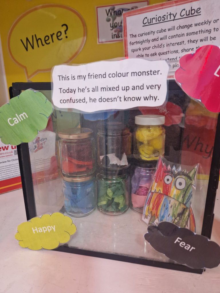 This month we are focusing on children’s emotional well being and developing their understanding of their emotions. We are using ‘The Colour Monster’, a book by Anna Llenas to get everyone talking and to support a host of themed activities.