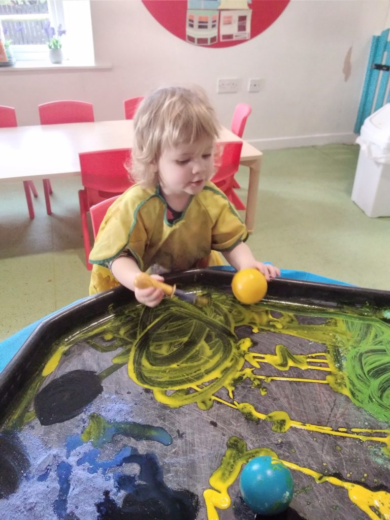 The Benjamin Bunnies loved sharing ‘The Colour Monster.’ They went on to explore colours using paint, mixing them together, making patterns with a range of tools and chatting all about them.