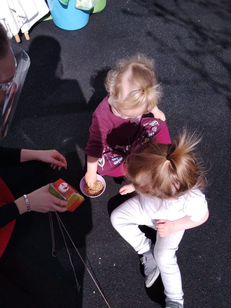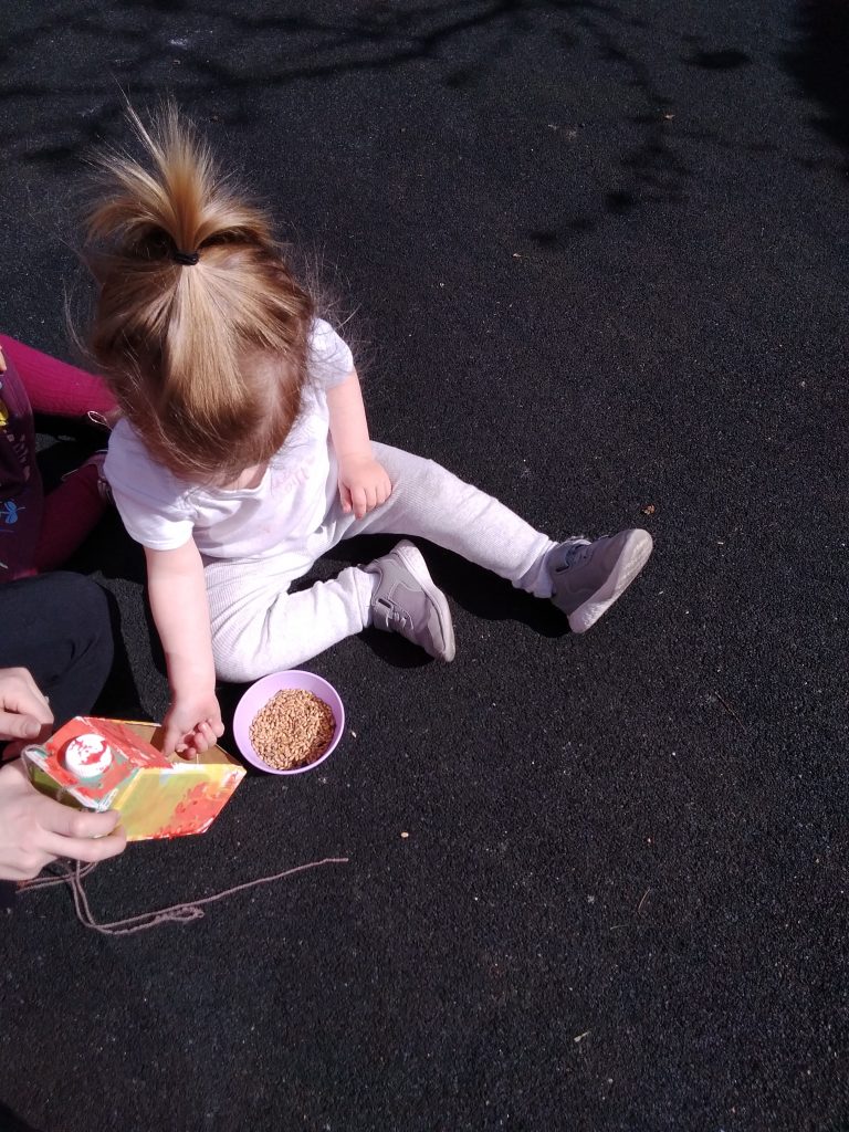 They made a bird feeder to hang outside to hopefully attract some hungry birds…