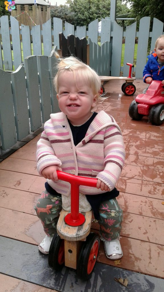 The vibrant Autumn colours were chosen to paint some seasonal pictures and then the outdoors called as the children took to the bikes to make marks as they rode through the water. Such fun!