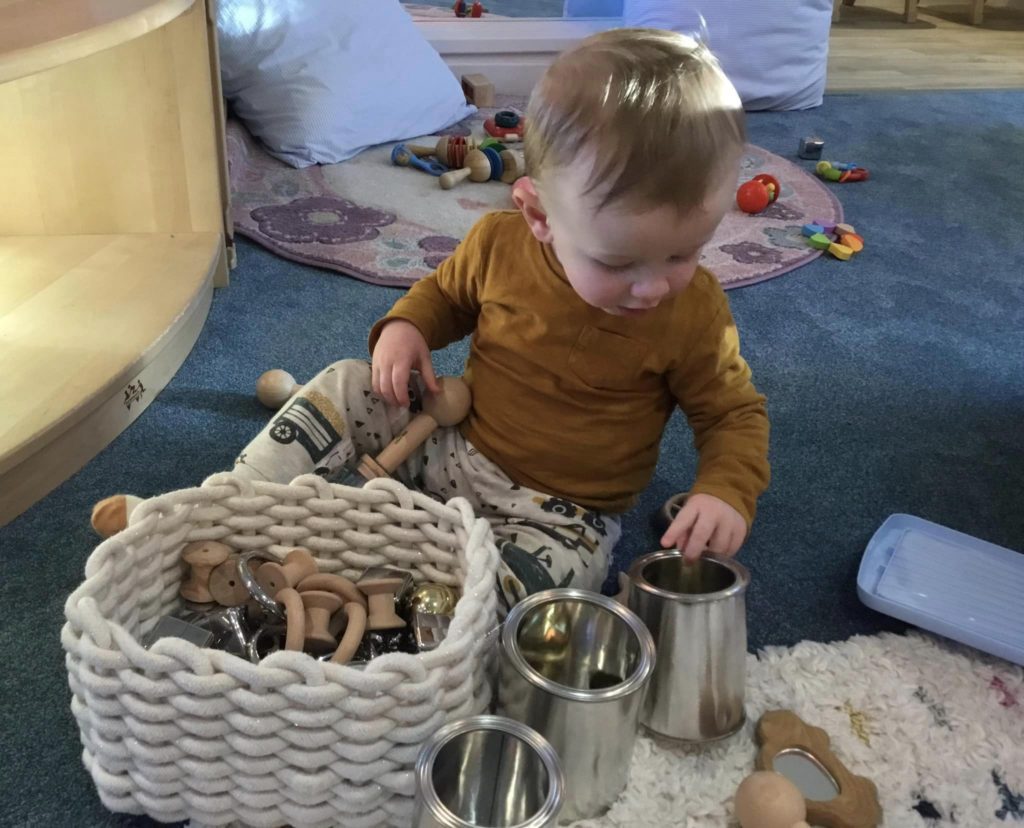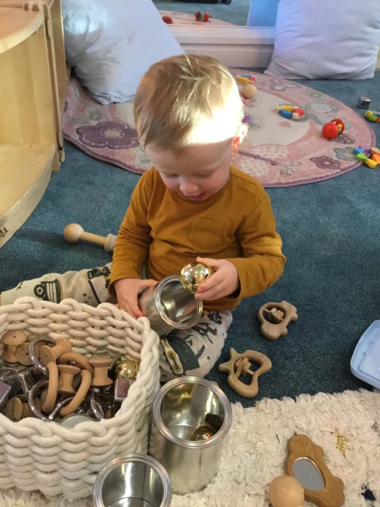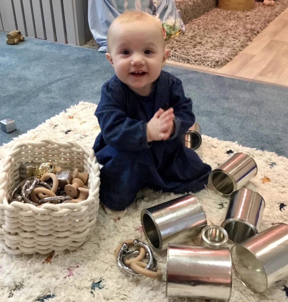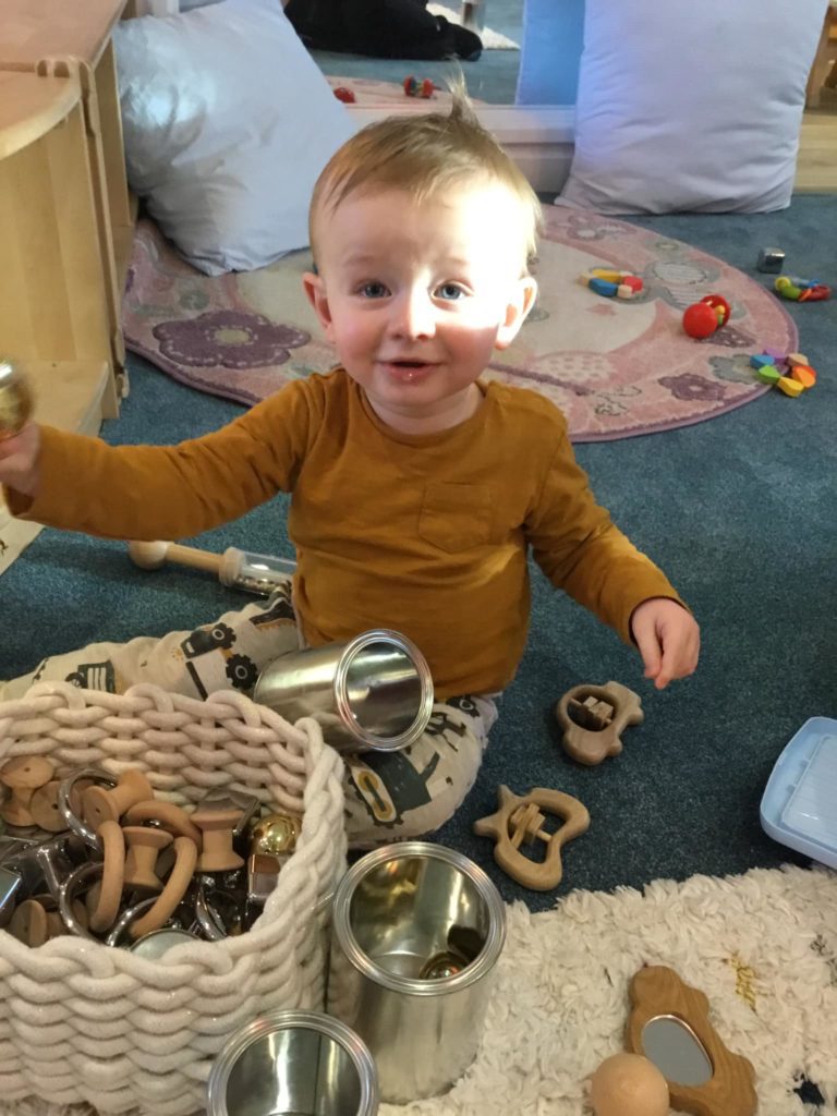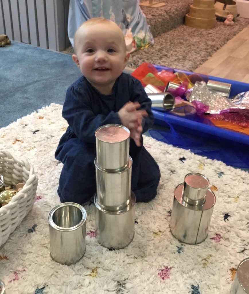 The babies have been using their imagination through sensory play this week. By using a variety of stimuli, the children had fun placing objects into tin containers to make lots of different sounds. They also used their skills to build towers and then had great fun knocking them down!