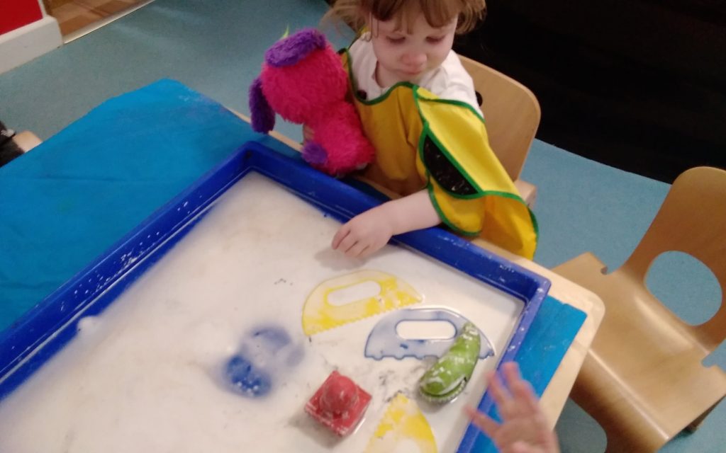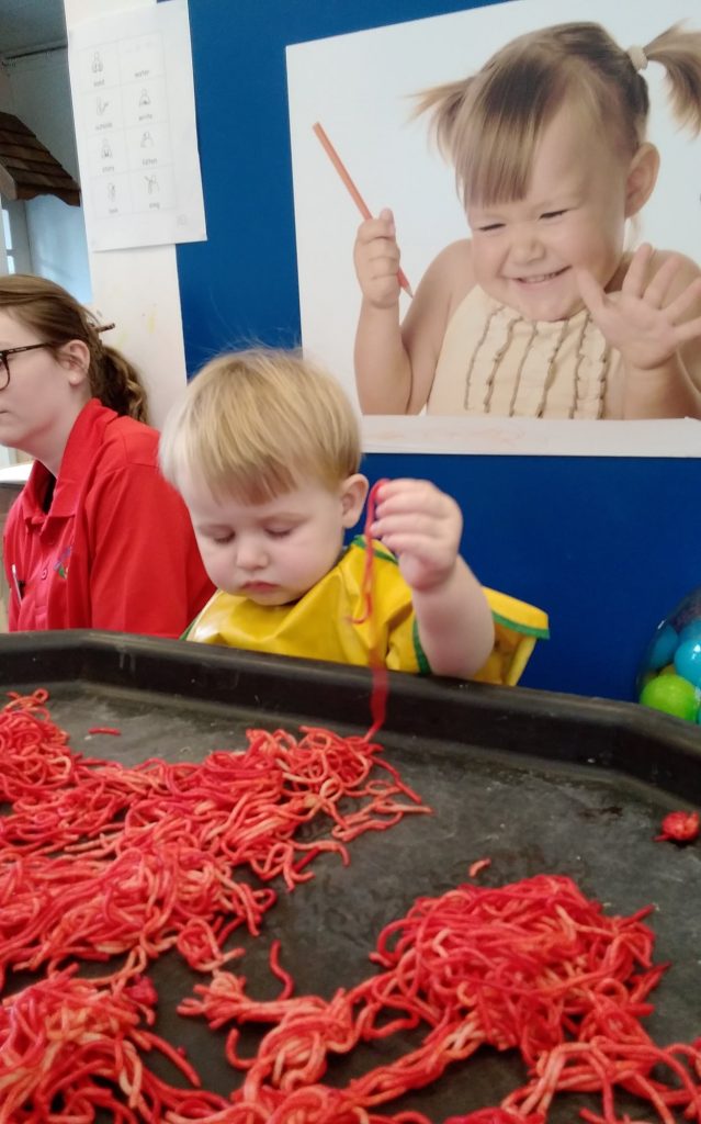 Everyone enjoyed playing with the different textures of the materials in the tuff trays and the exciting bright colours.
