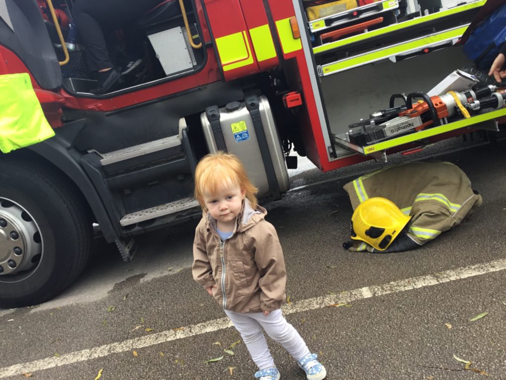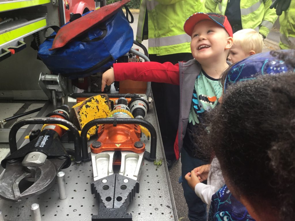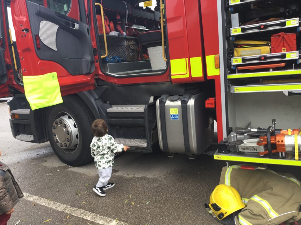 Our younger Peter Rabbits and Bobtails children also enjoyed a visit to the fire engine. There were lots of smiley faces and giggles when they saw the big red fire engine.