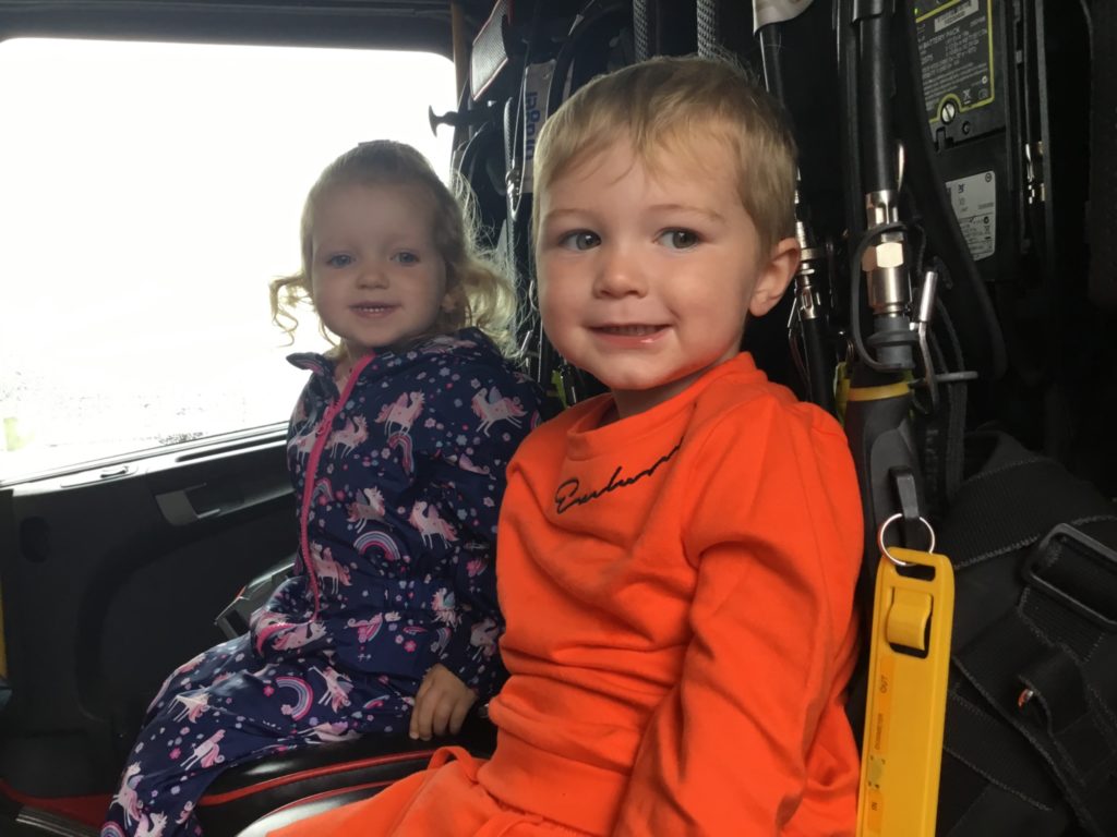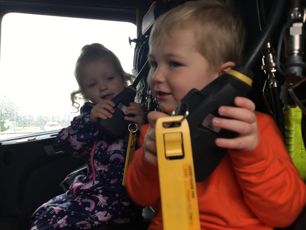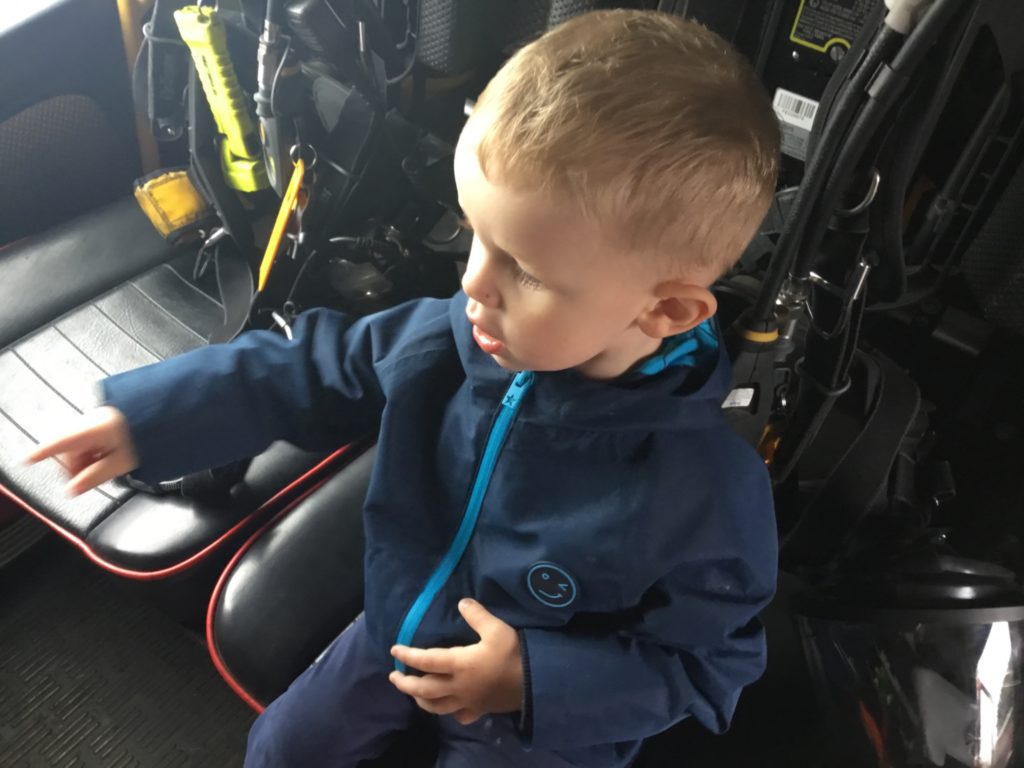 Looking at and sitting inside the fire engine was a huge treat and then everyone listened really well as the firefighters showed them all the equipment carried by the machine.