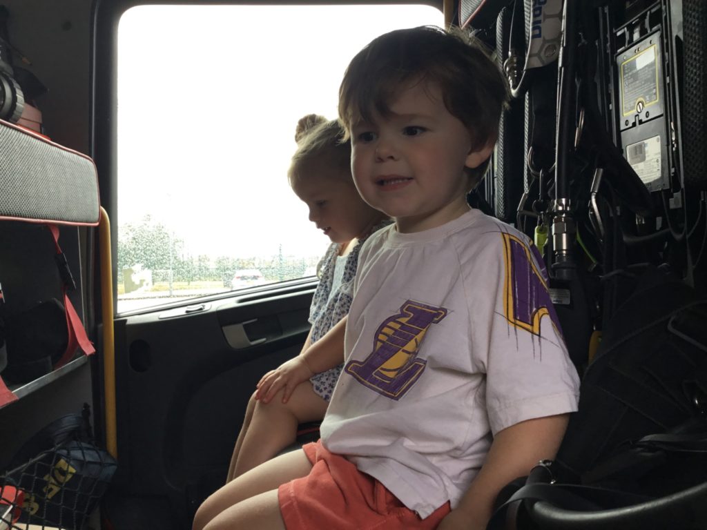 We finished off our visit from the firefighters by watching the bright flashing lights on the engine and listening to the super loud sirens.