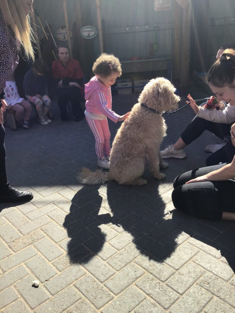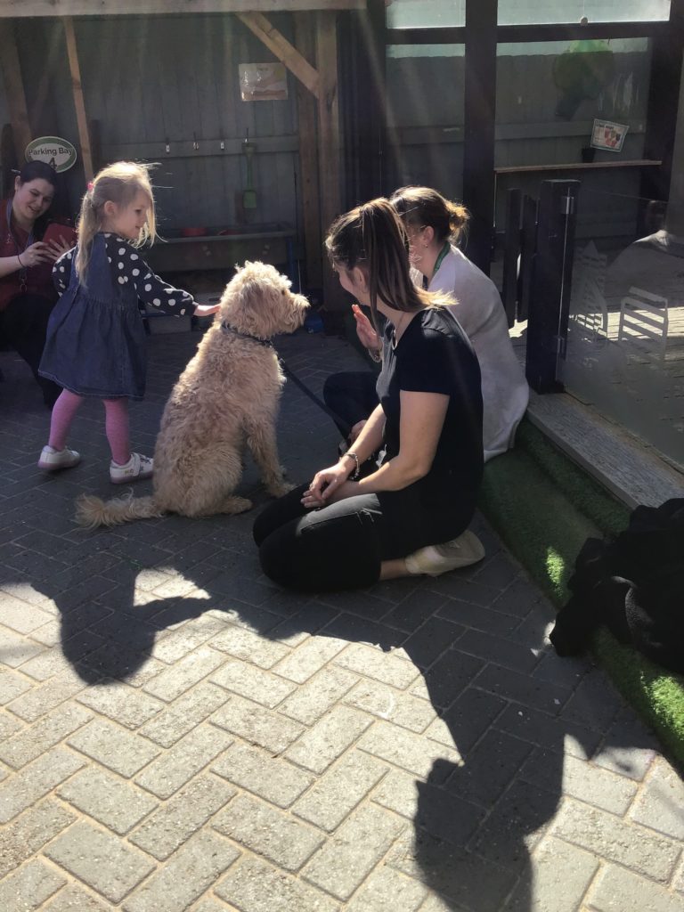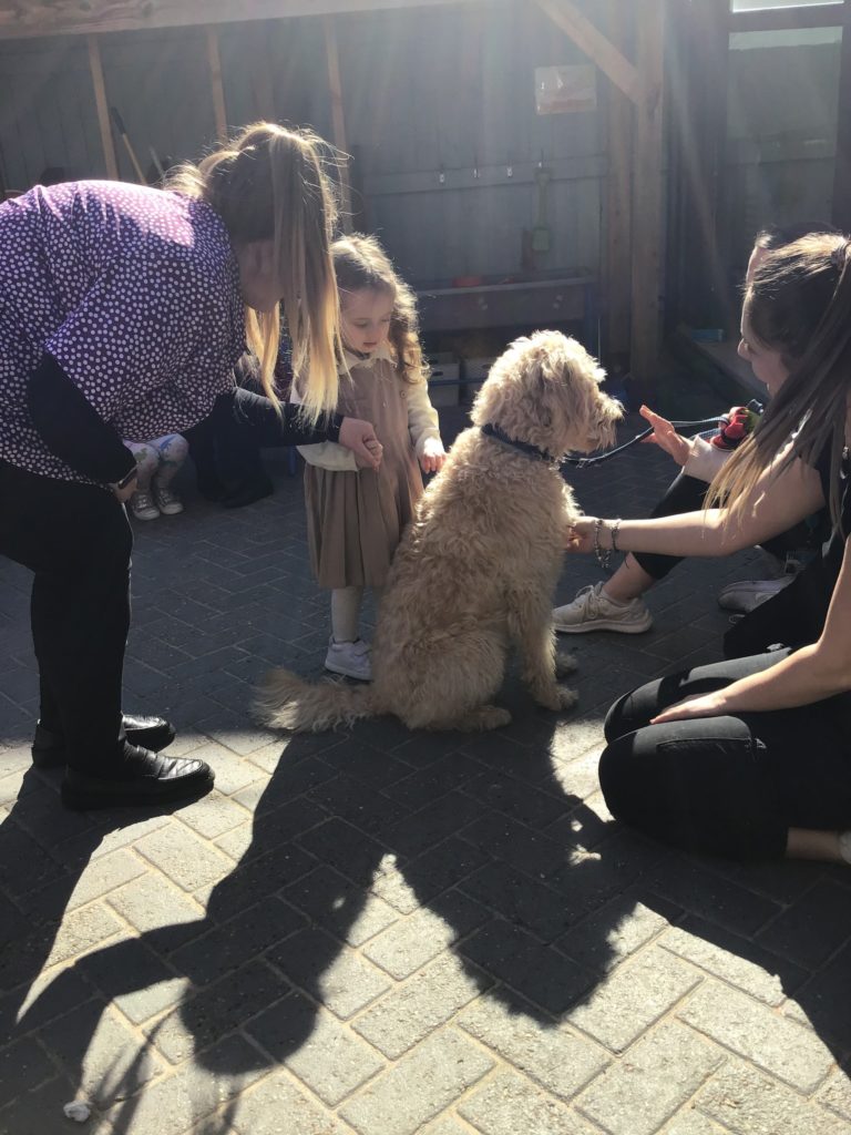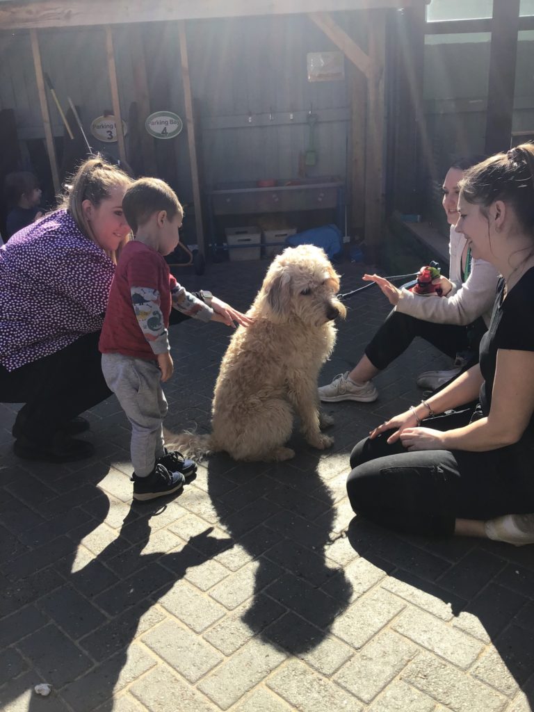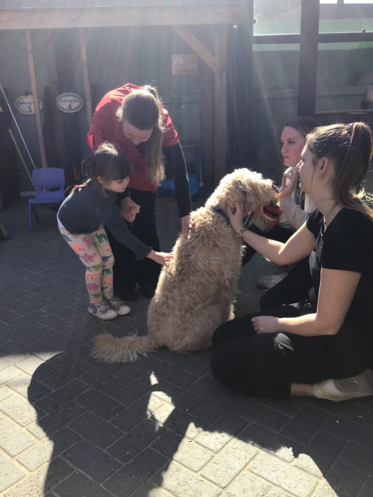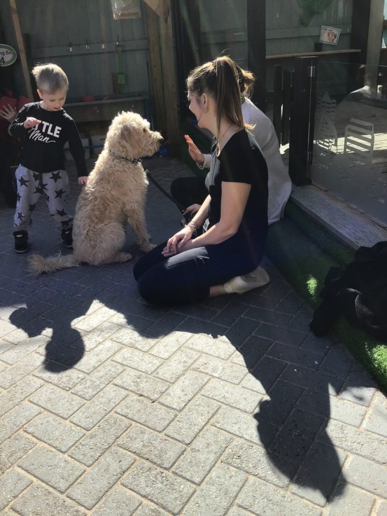 Children at our Marina, Rosemary Lane and Wragby Road nurseries were very honoured to receive a very special visit from Freddie the therapy dog, who was brought along by Anna and Miss Jen.