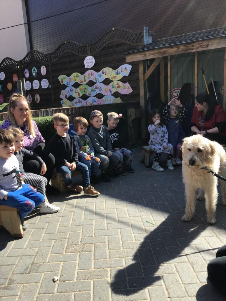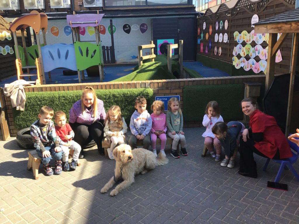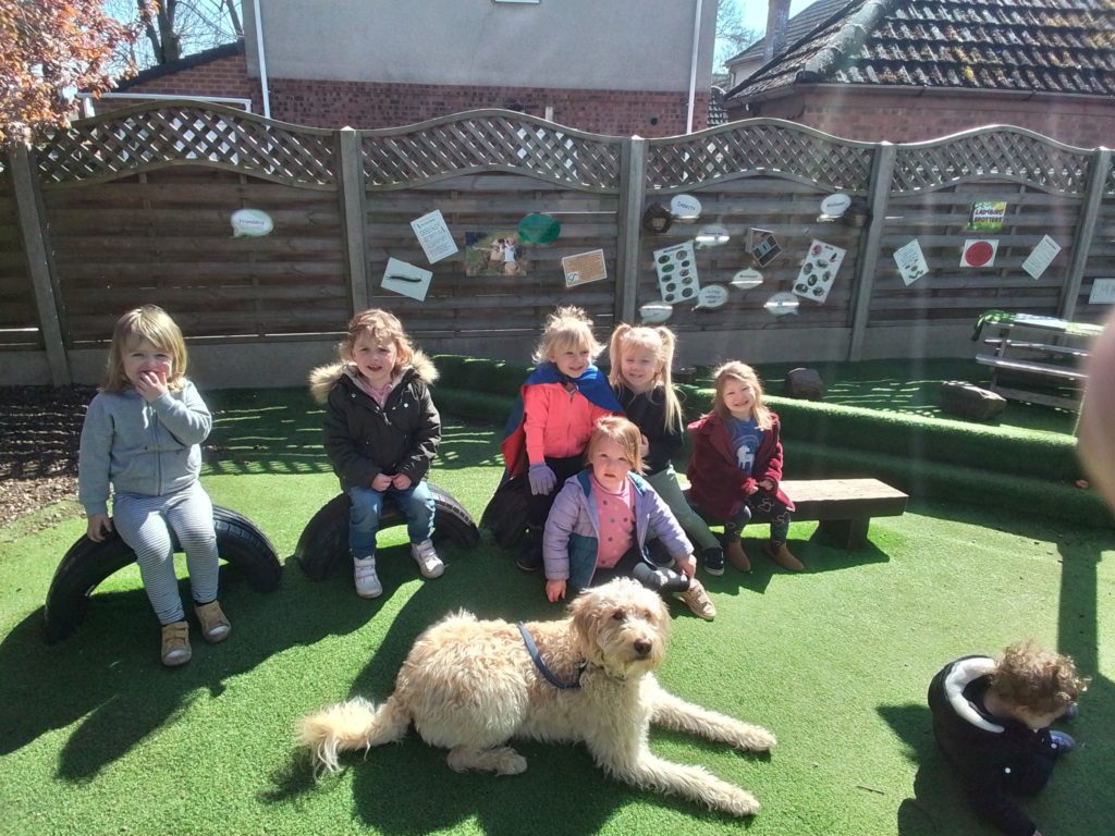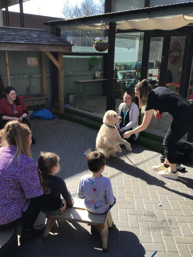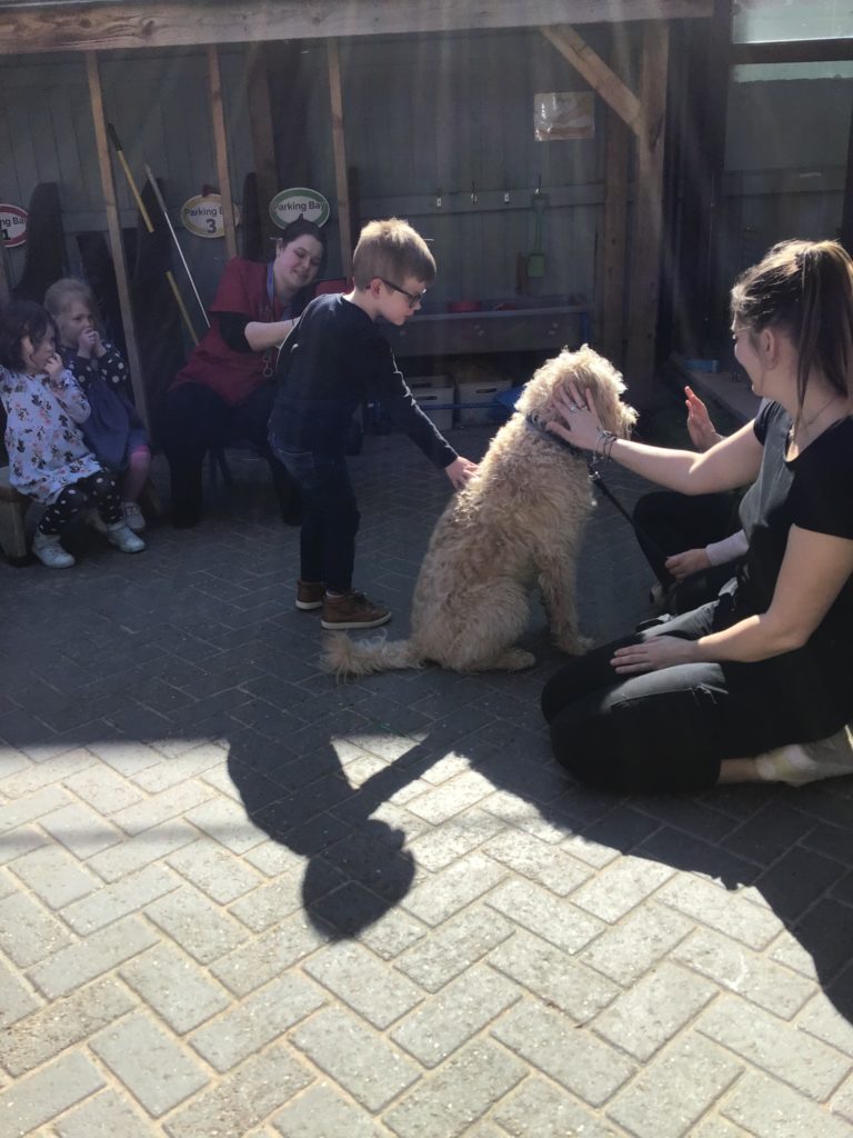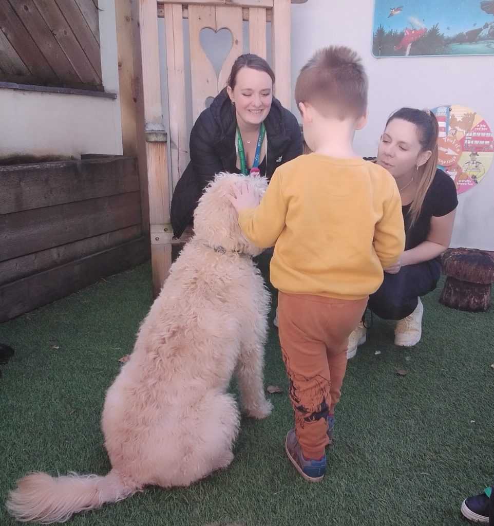 Children at our Marina, Rosemary Lane and Wragby Road nurseries were very honoured to receive a very special visit from Freddie the therapy dog, who was brought along by Anna and Miss Jen.