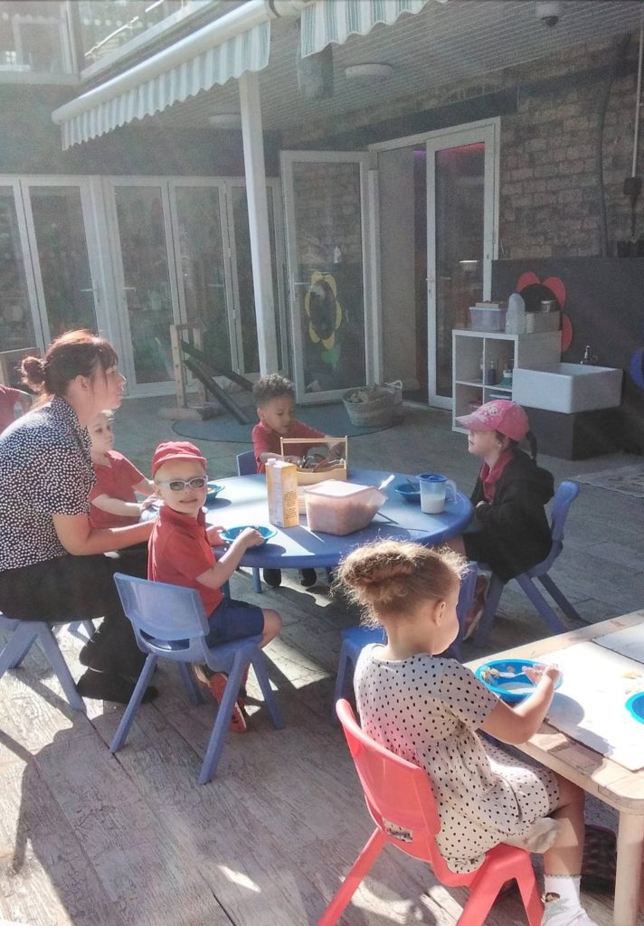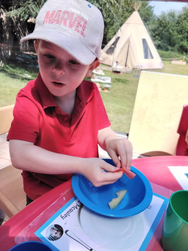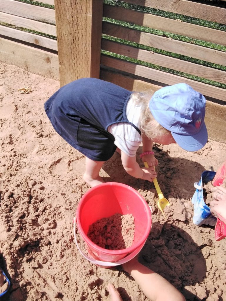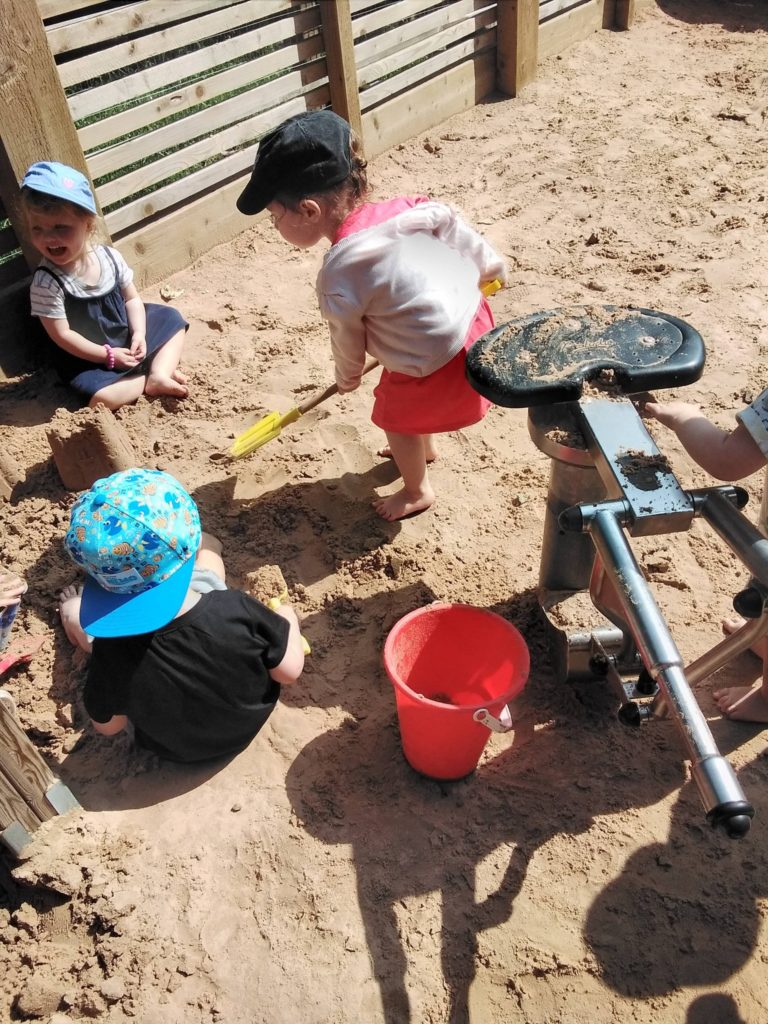 Next stop was the large sand pit, where, playing barefoot and enjoying the sunshine, they built sandcastles with Miss Alice using the spades to fill the buckets and going ‘tap, tap, tap’ on the top before the big reveal!