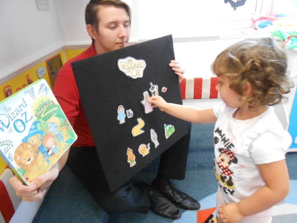 As it’s the 80th birthday of the Wizard of Oz, we spent more time focusing on the story. After sharing the book, we spoke about the main characters. One of the children knew the lion was a little scared and he needed to be brave. The children identified with the characters’ emotions which leads in nicely to our new topic starting in September, ‘All About Me’.