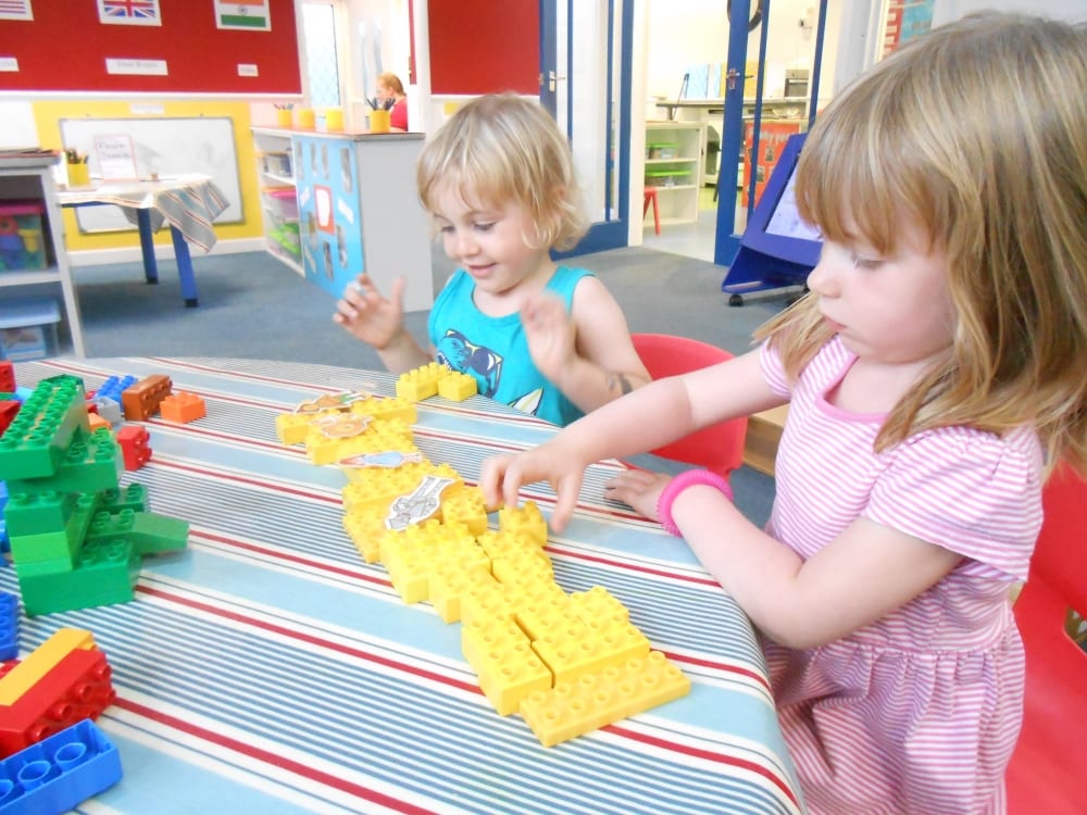 The children made Dorothy’s ruby red slippers using different resources such as paint, tissue paper and red glitter to make them sparkle. We talked about the yellow brick road and decided to make our road using yellow Lego bricks which we then used with the characters from our story board. The children talked about how they would like to walk on a yellow brick road and so we made our own ‘yellow brick road’ using the large construction blocks. They had fun walking along the magic road to find the Emerald City.