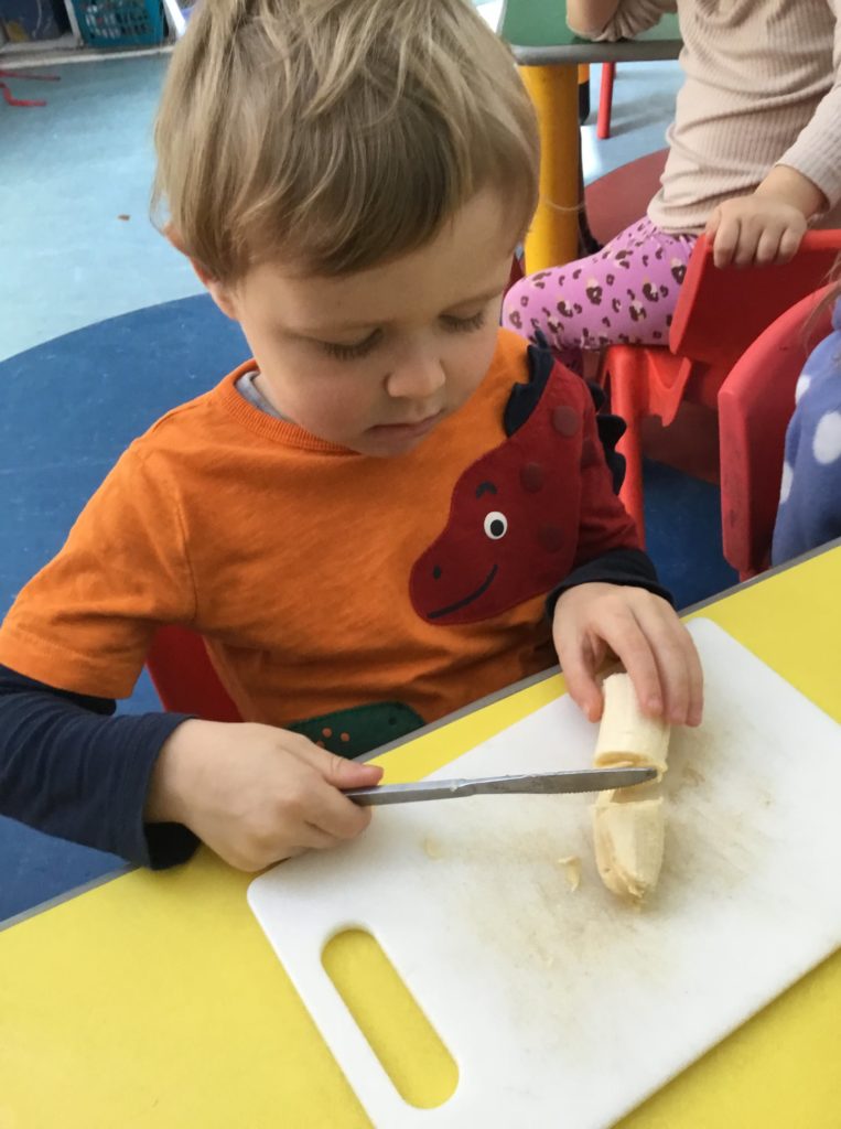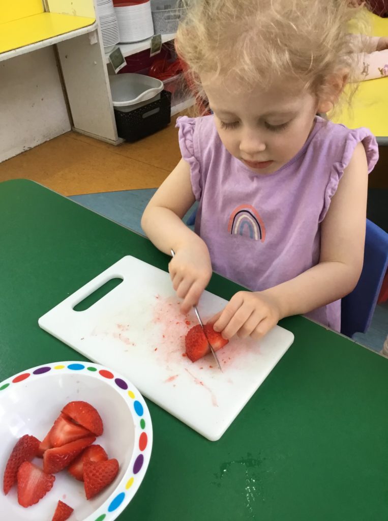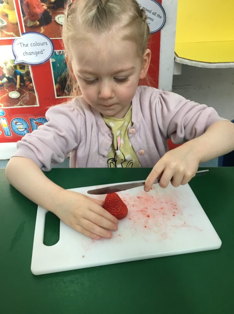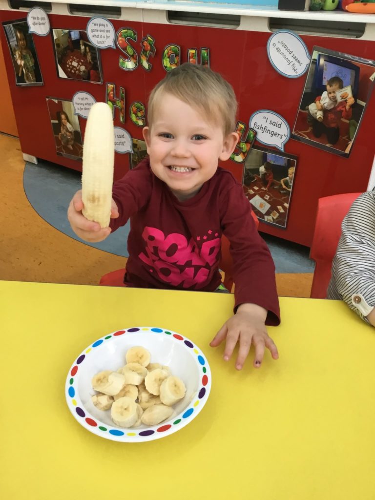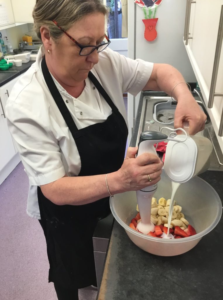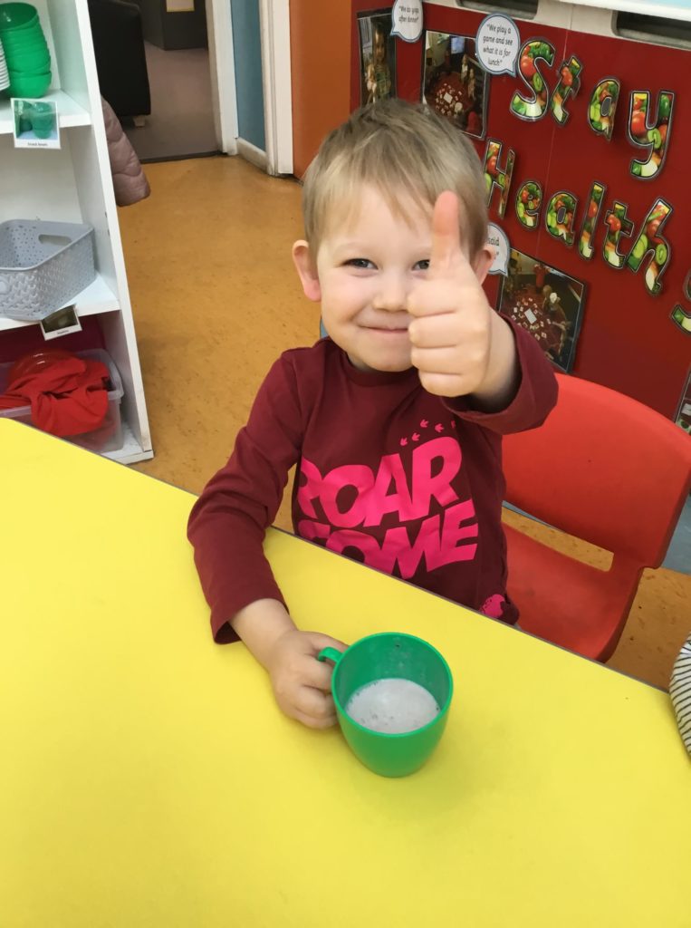 It was a big ‘thumbs up’ from the children at Derby Road as they tasted the milk shake which they had designed by choosing and preparing the fruit which was to go into the milky goodness. Once the fruit was carefully chopped by the children, our nursery cook whisked the fruit off to the kitchen to be blended into a creamy milkshake.