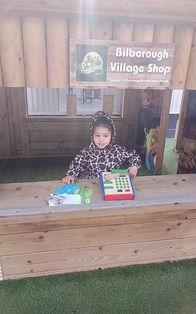 A visit to the village shops is always popular! Here the children use their imaginations as they do their shopping before hopping back on their bikes to ride home and make lunch in the outdoor kitchen!