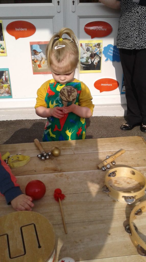 They’ve been exploring the number ducks recognising numerals and exploring musical instruments playing them in a range of ways creating loud and soft noises.