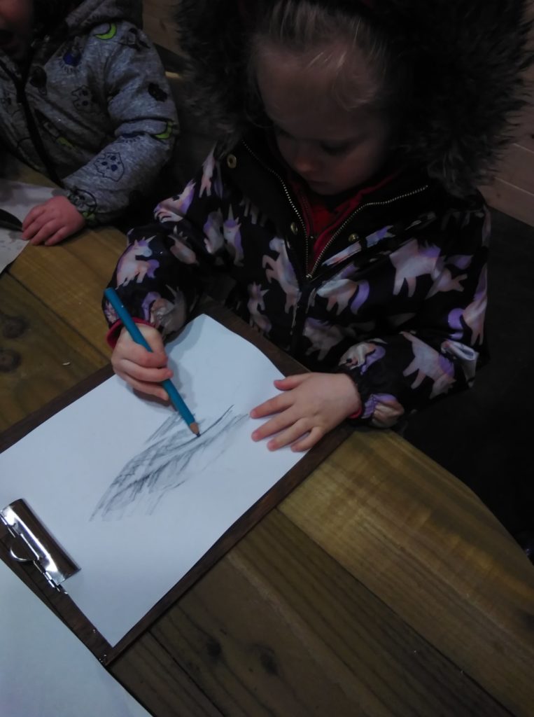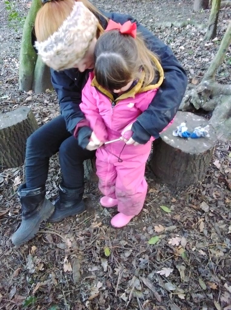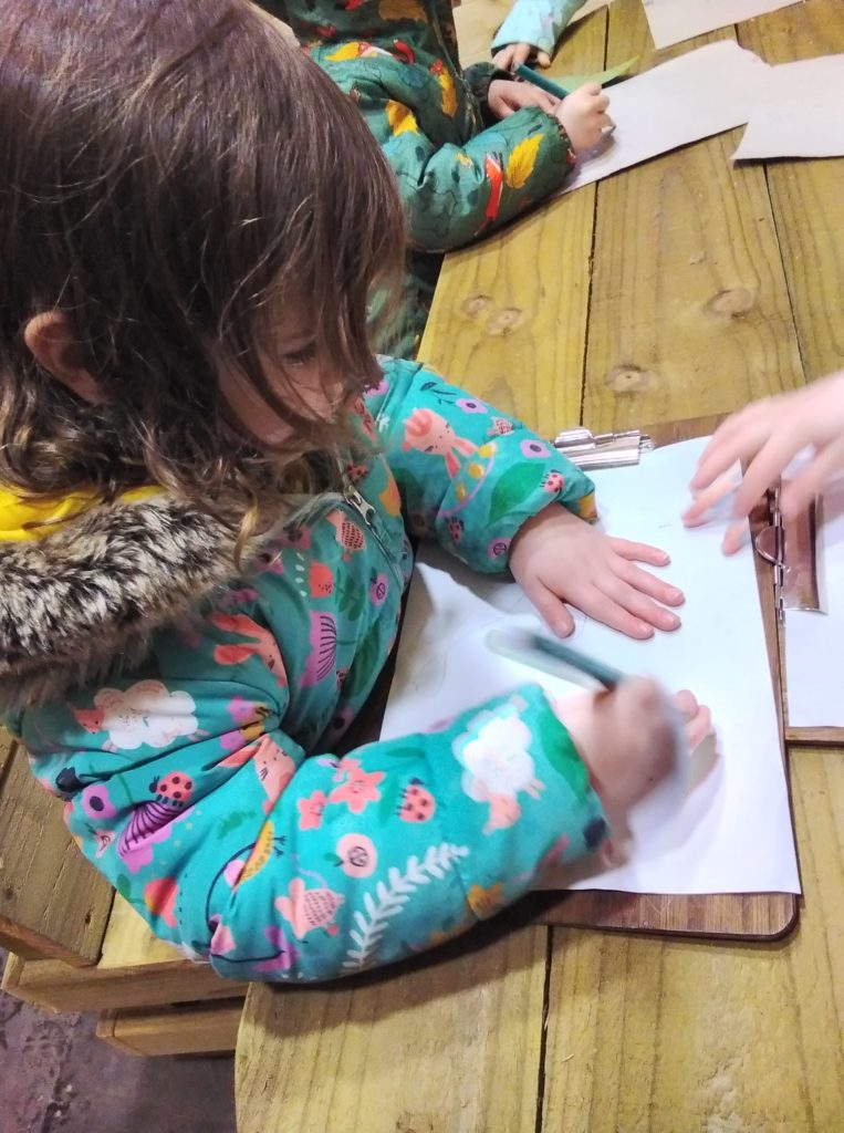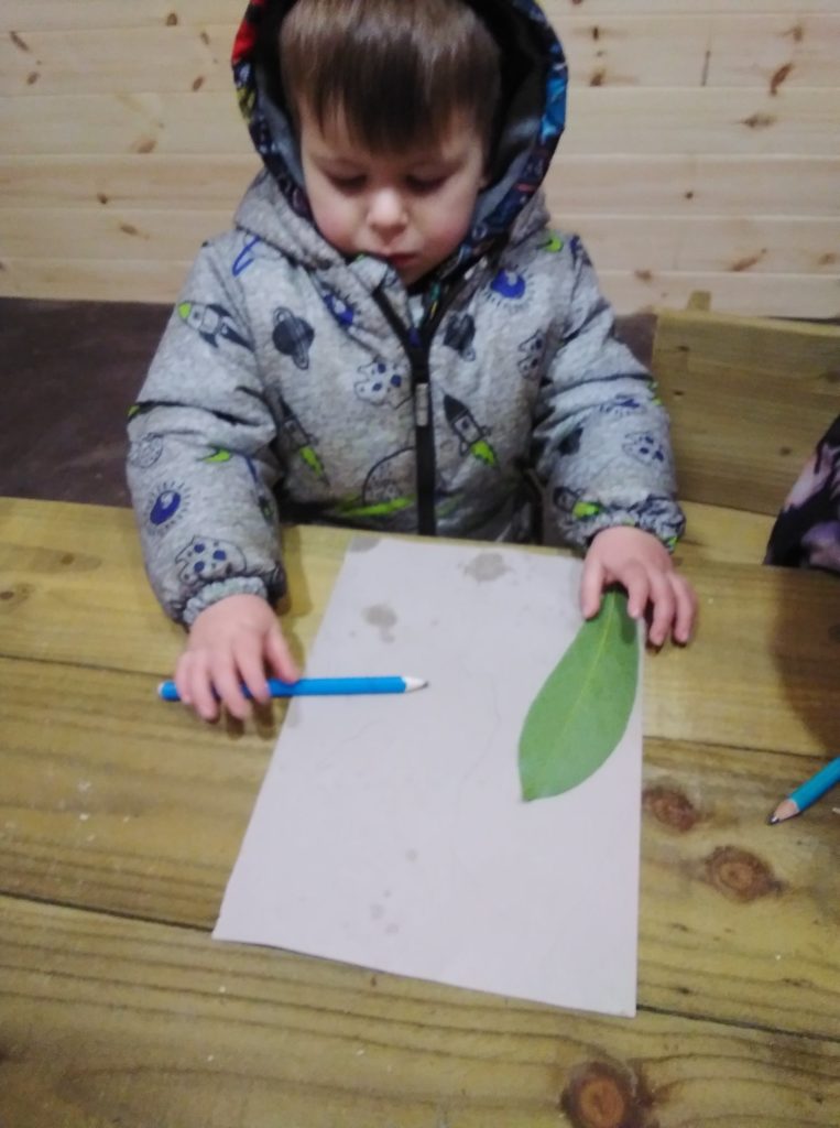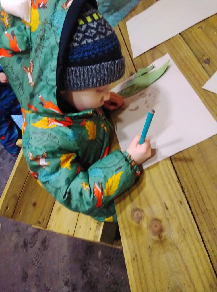 They’ve also been collecting leaves to trace with and used sticks to enhance their role play to recreate making fires with Miss Lizzie.