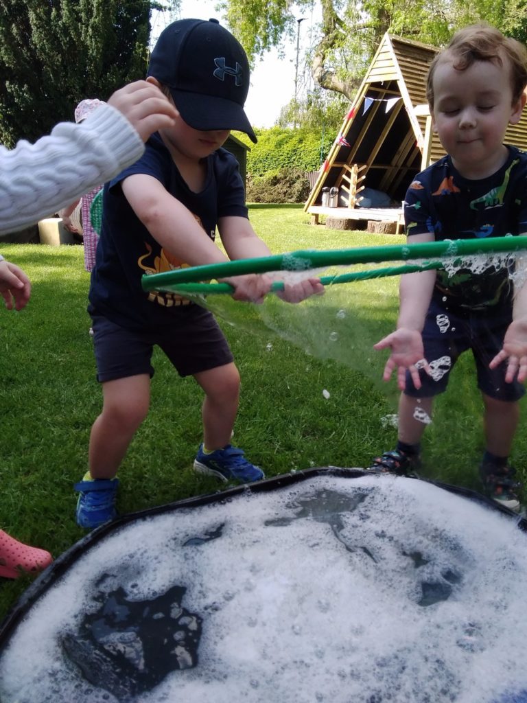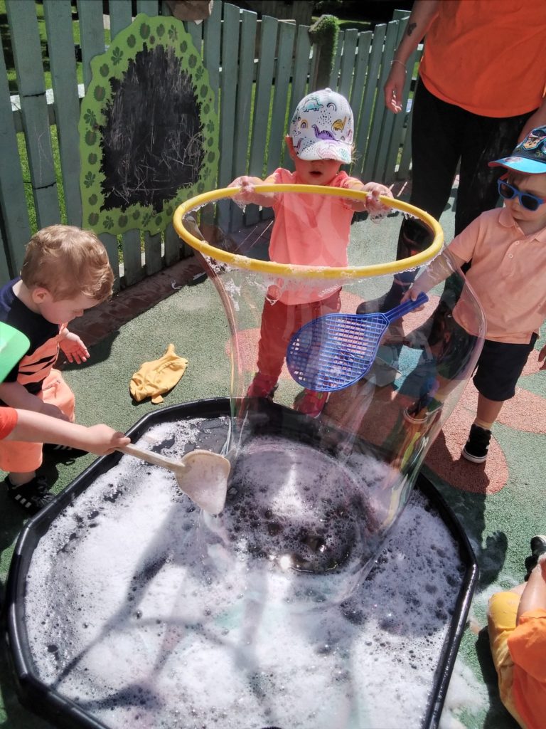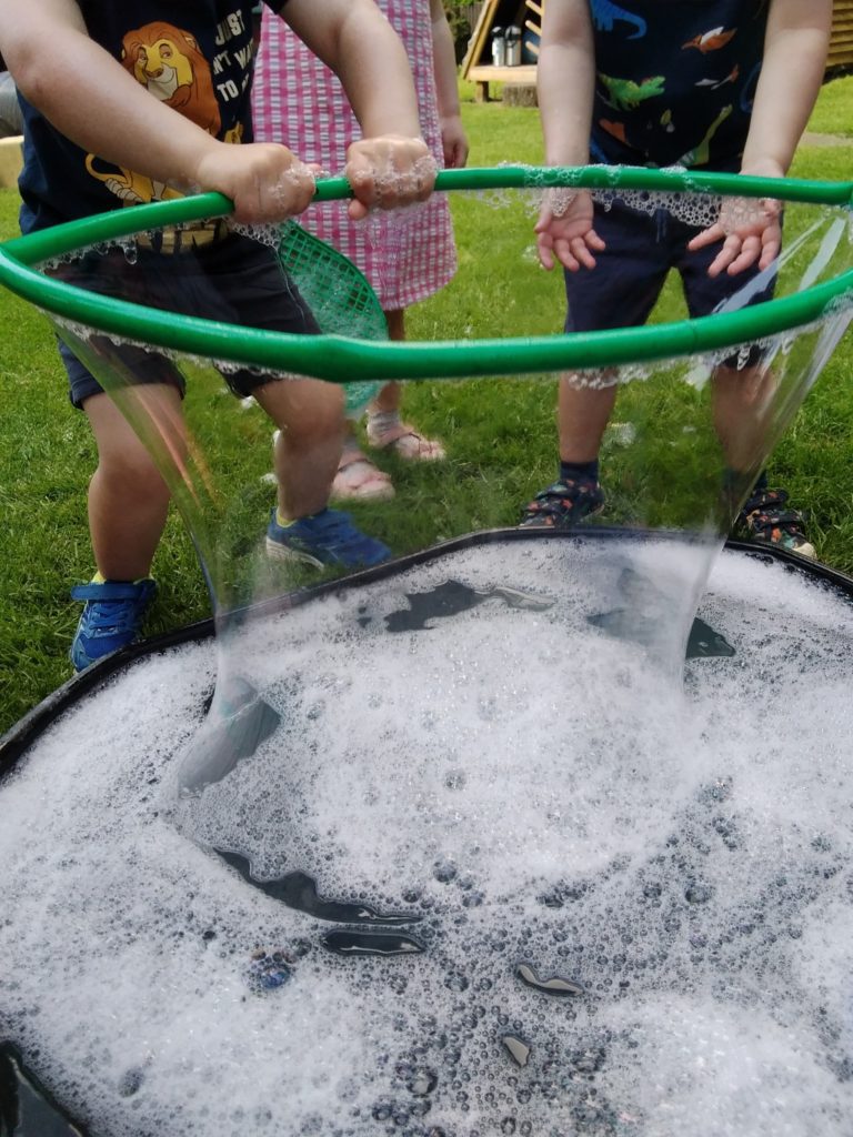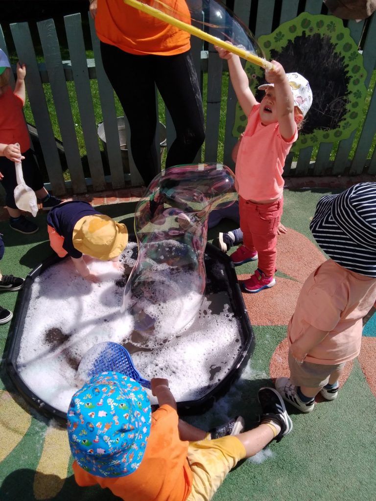 The action continued with some bubble making activities. Popping bubbles is one of our favourite things to do!