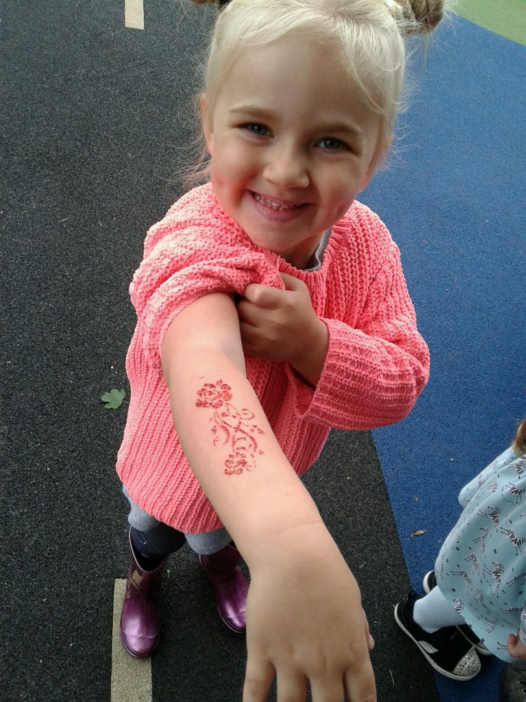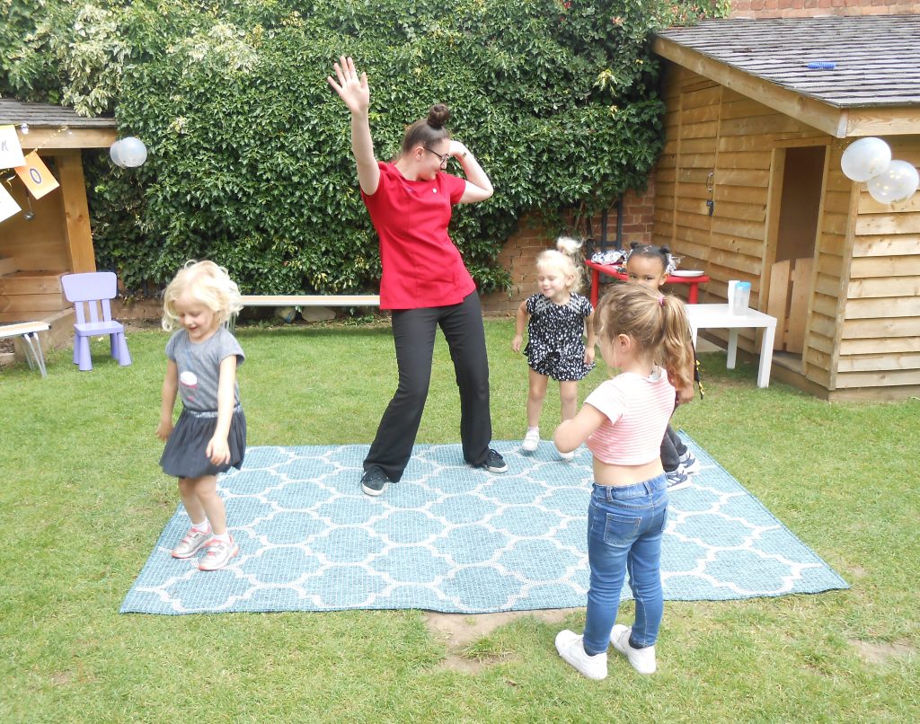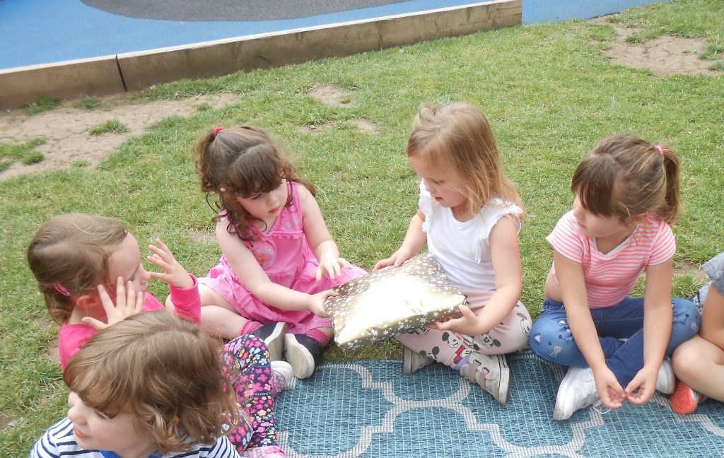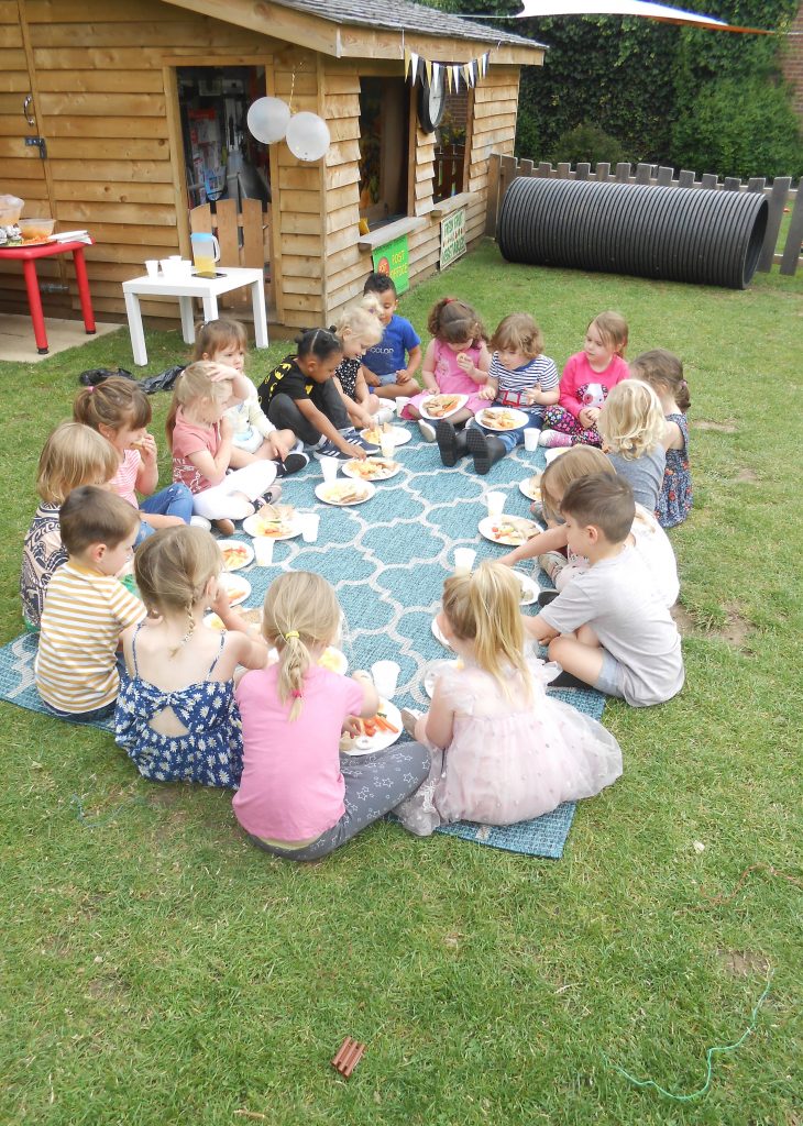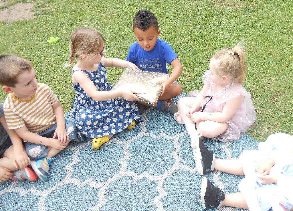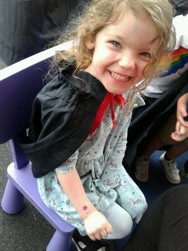 After the graduation ceremony it was time for our party. As well as having photos taken with friends, the children danced to music and had glitter tattoos. After playing games such as pass the parcel and musical statues, the children sat with their friends to enjoy a yummy picnic tea. The special graduation cake was a huge success.