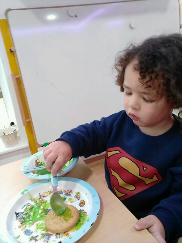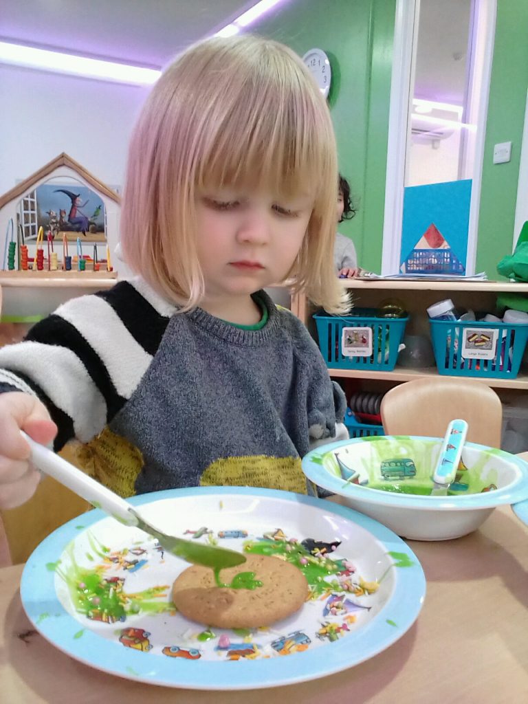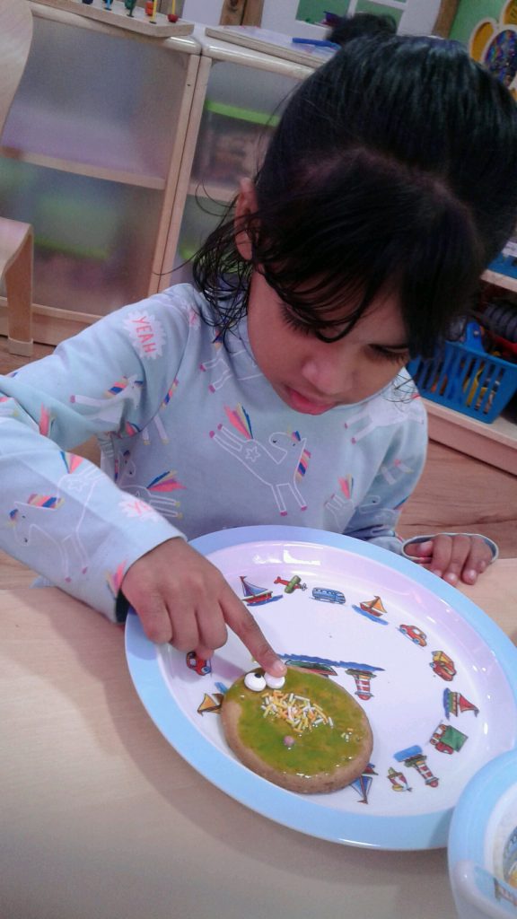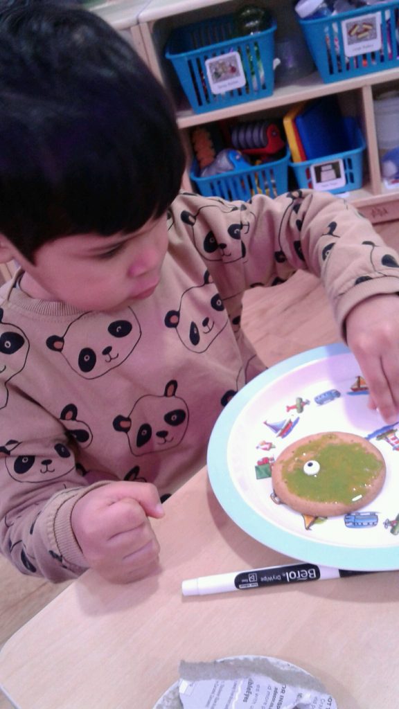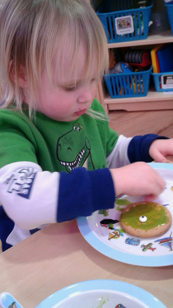 They have also created alien biscuits. To do this they used green food colouring for the alien’s body, added googly eyes and also pipe cleaners for their arms!