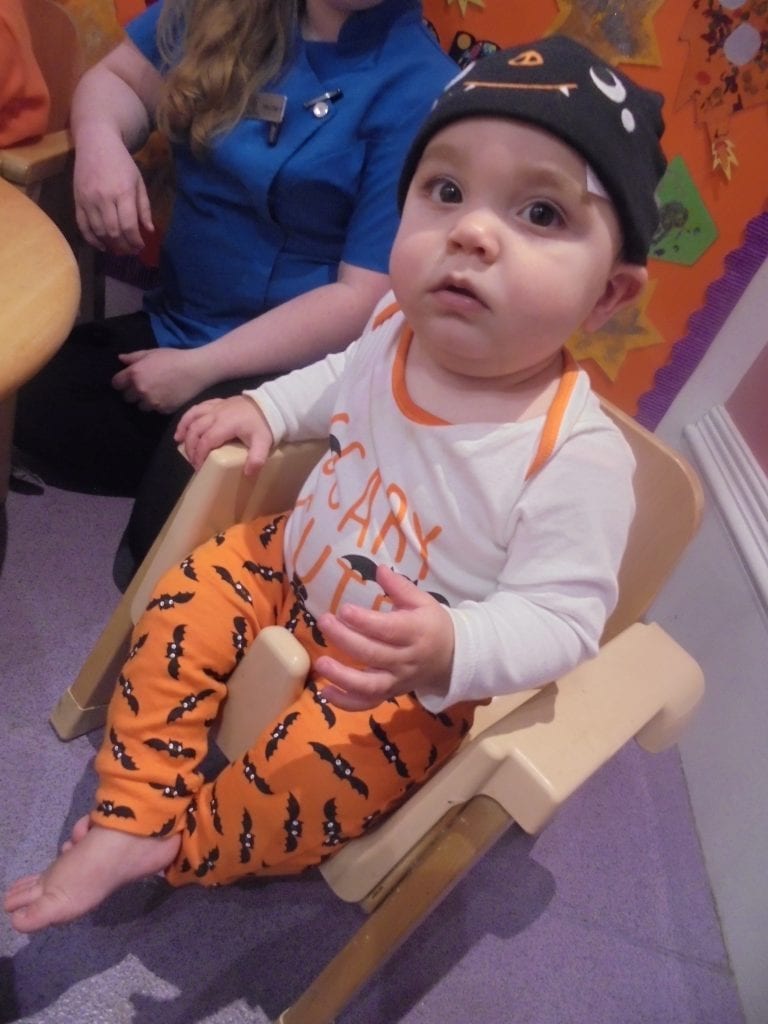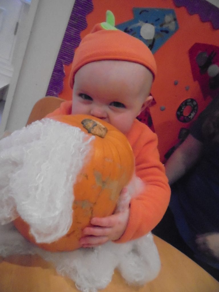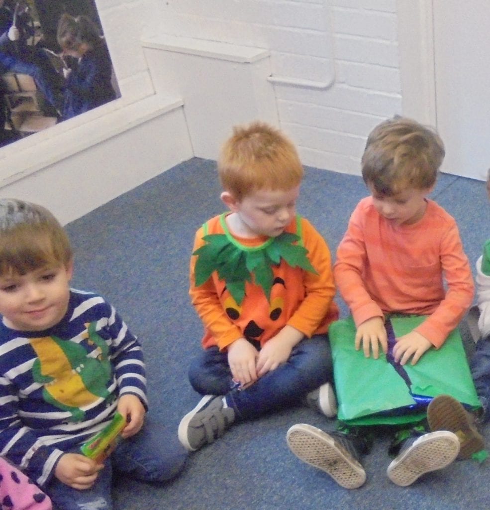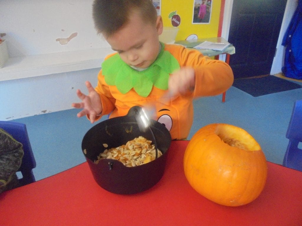 The babies enjoyed exploring the different textures of a pumpkin and cutting and mark making using Halloween colours and textures.