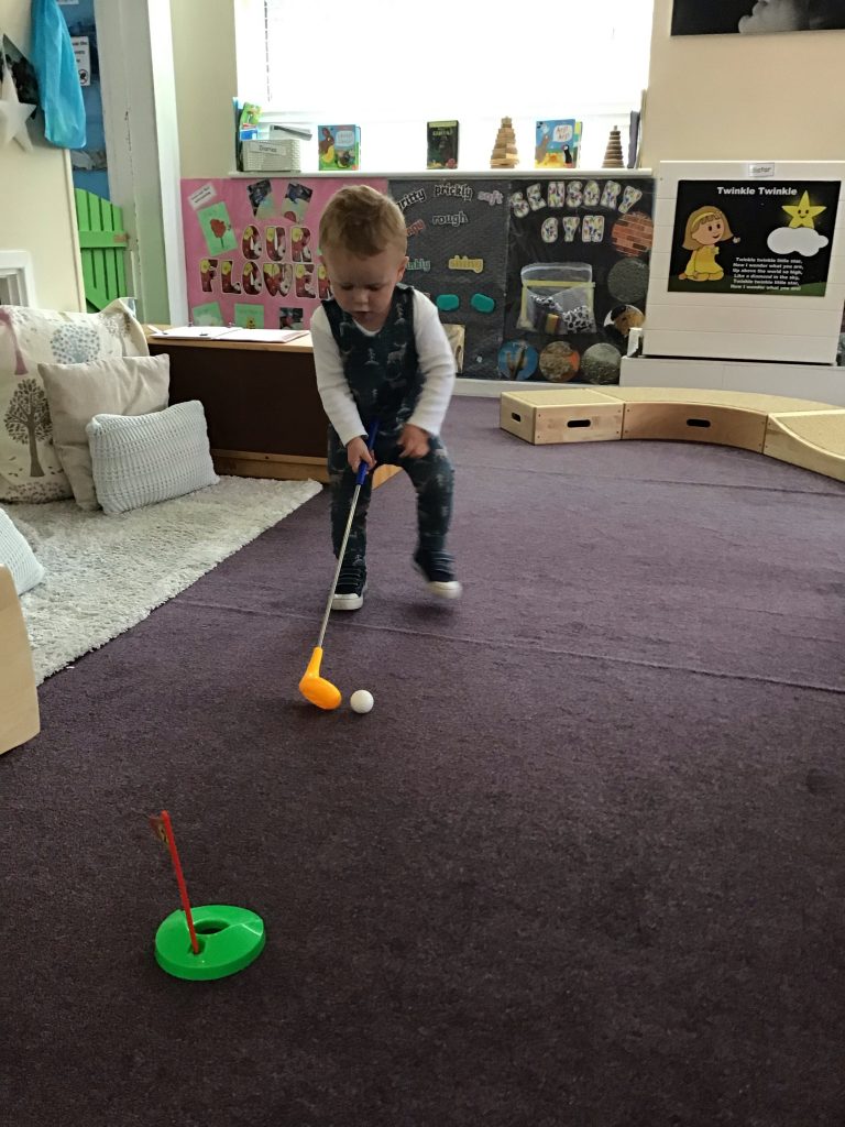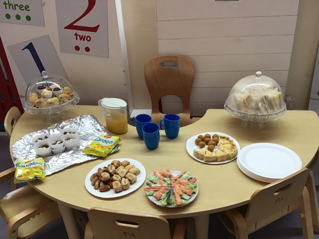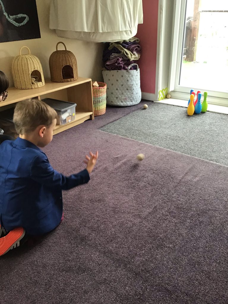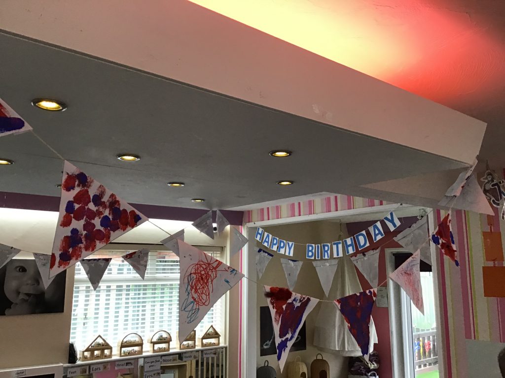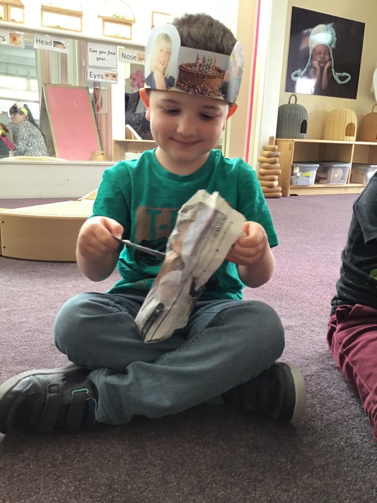 The nursery was decorated with the festive bunting we made earlier in the week. We all dressed in our party clothes and wore party hats decorated with Captain Tom’s face. At the party we played games such as mini golf, skittles, pass the parcel and musical statues. There was also some splendid party food which featured the lovely scones we all helped to make.