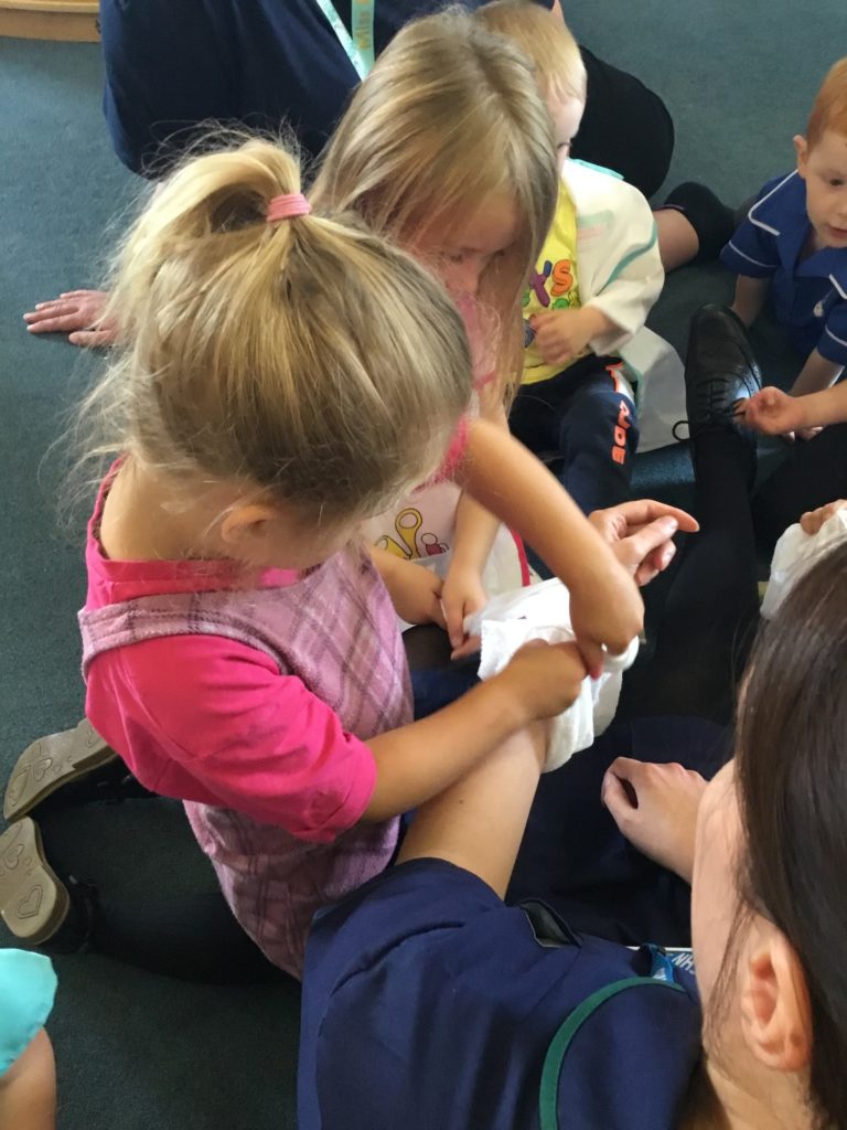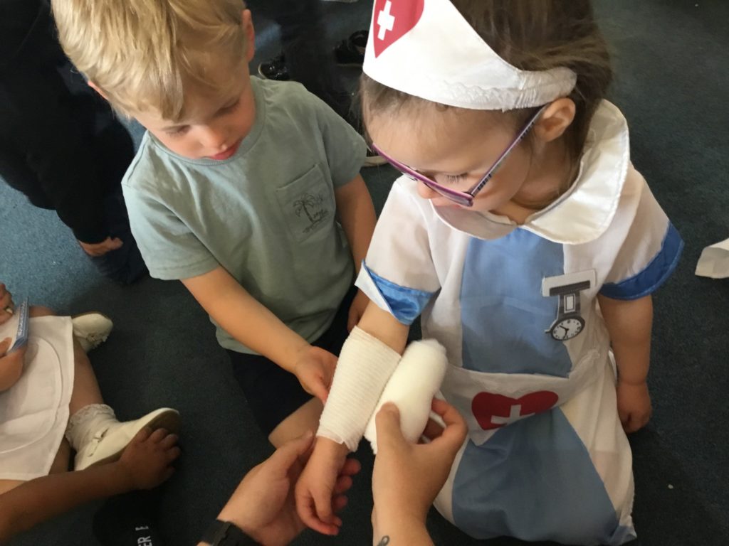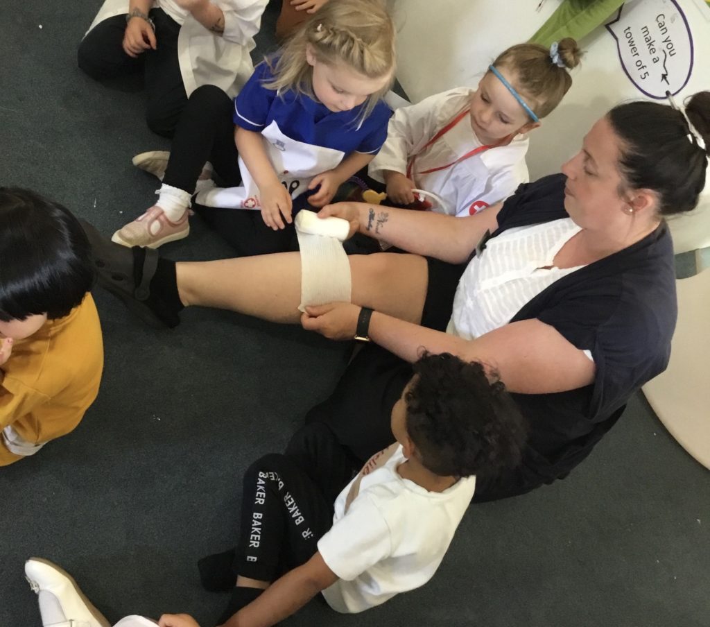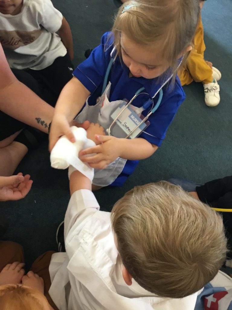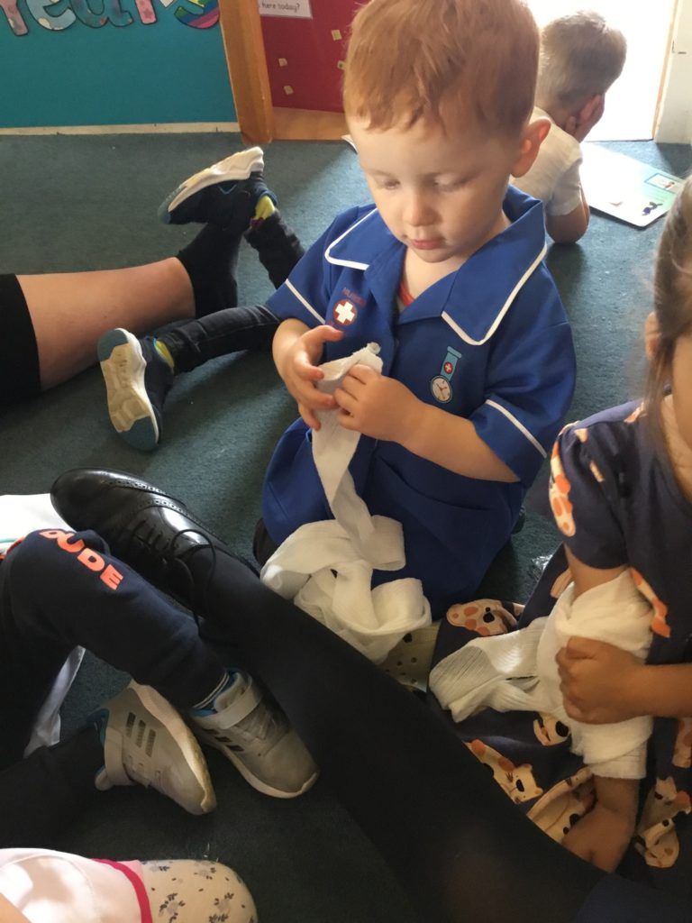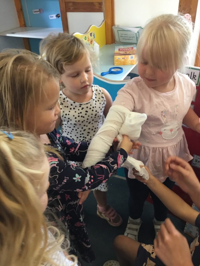 The children had such a good time role playing medical staff, using the bandages and making their notes! They had so many important questions to ask Charlotte‘s Mummy!
