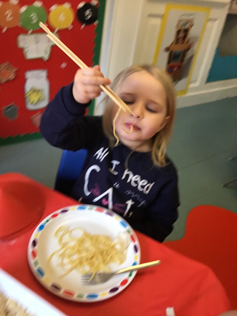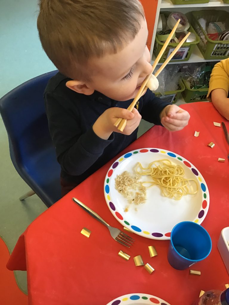 Happy Chinese New Year! Here at Newark Town we made special lanterns, listened to Chinese music and sampled some Chinese food using chopsticks. The children made comments such as, “I like noodles. I have them at home.” Everyone tried hard with the chopsticks when we were having our tasting session. “We get the food with the chopsticks it’s tricky,”said one child. It certainly was, but well done everyone for having a go!