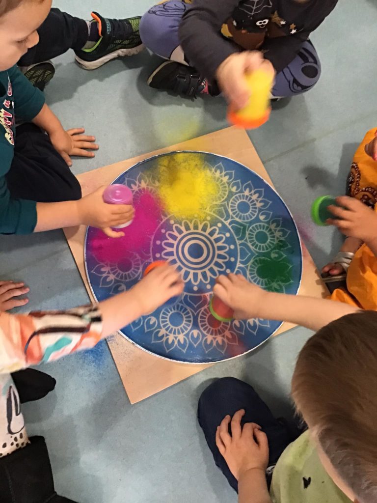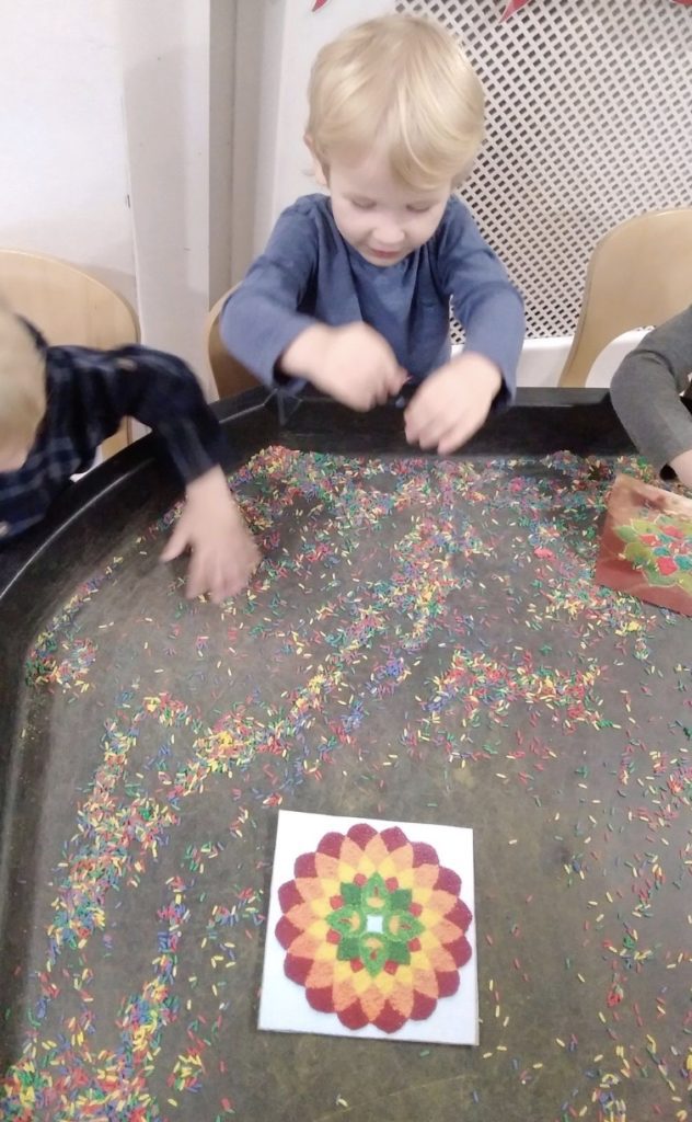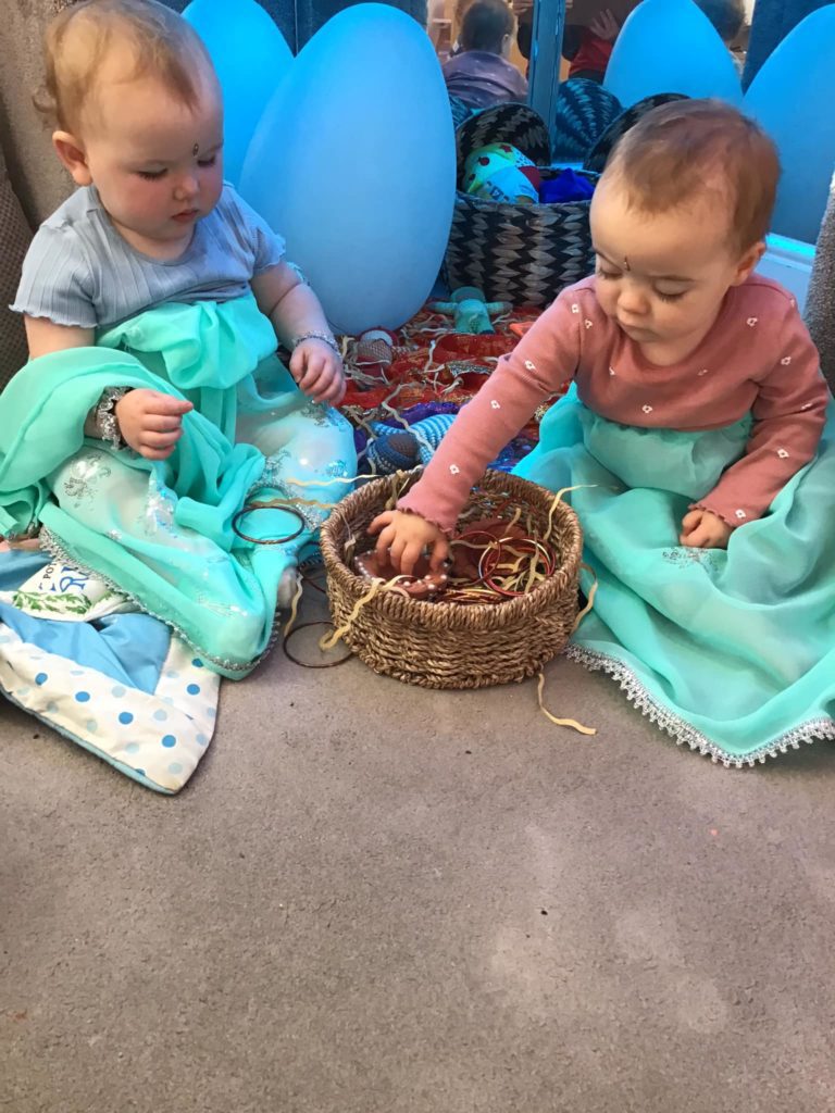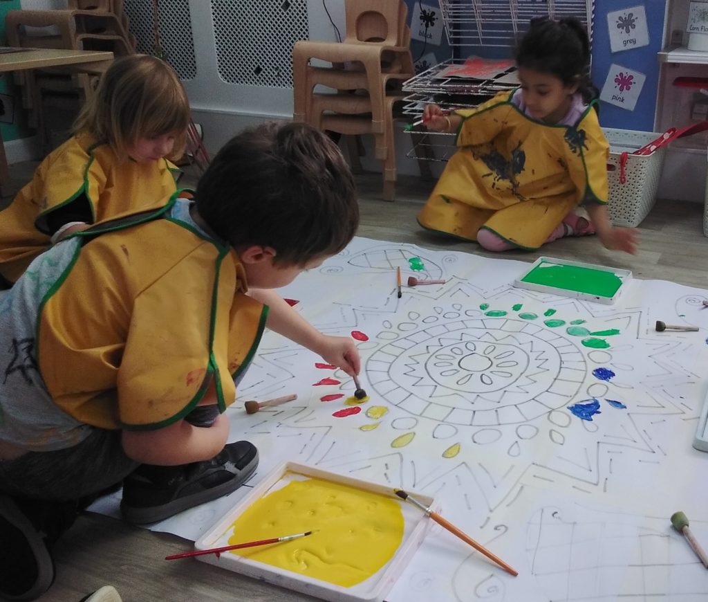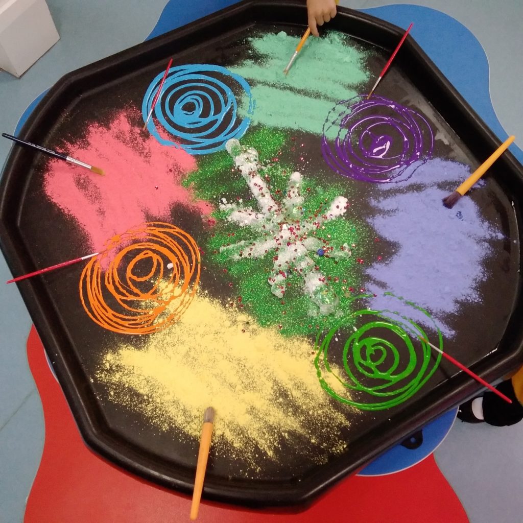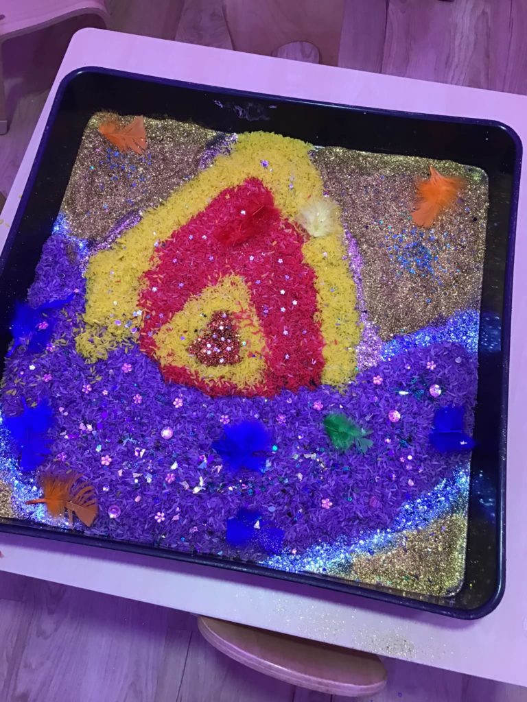 Sensory tuff spots have become transformed by beautiful rangoli patterns which enabled the children to explore vibrant colours and textures. Diva lamps have been made and decorated and hands have been made beautiful with intricate mehndi patterns.