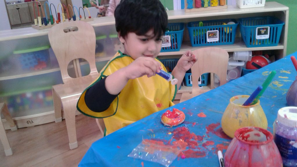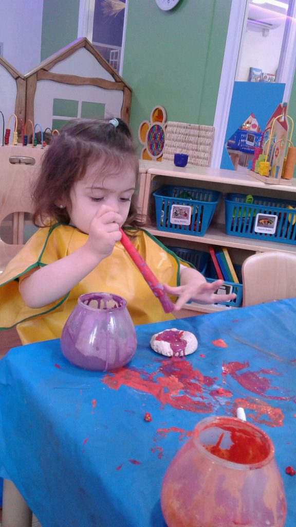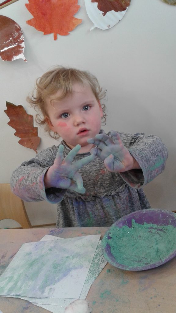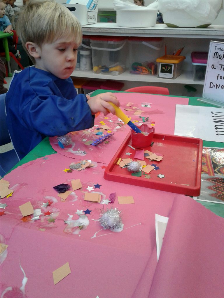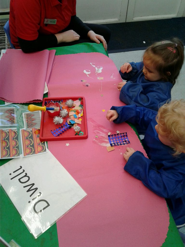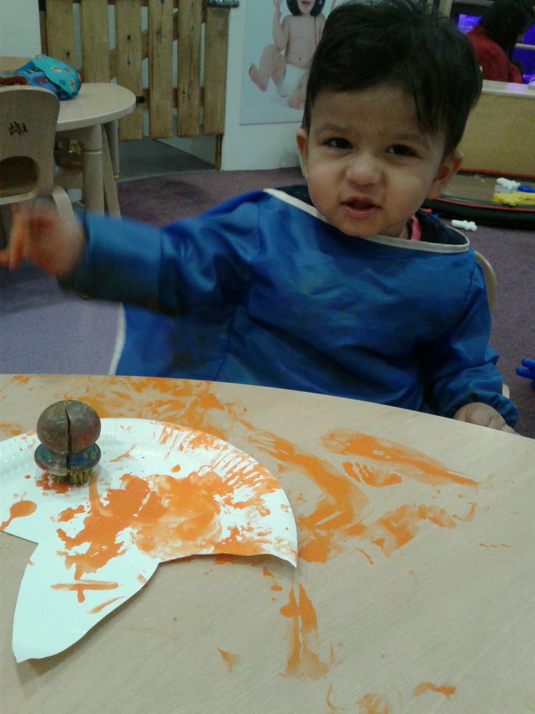 To celebrate Diwali and to find out more about the festival, Benjamin Bunnies at Derby Road made a Toran which is an Indian door hanging decoration. They had lots of fun learning new words and working together to make their beautiful decoration. The activity was a little messy with the use of some rather sticky glue but the little ones were very proud to show off what they had made.