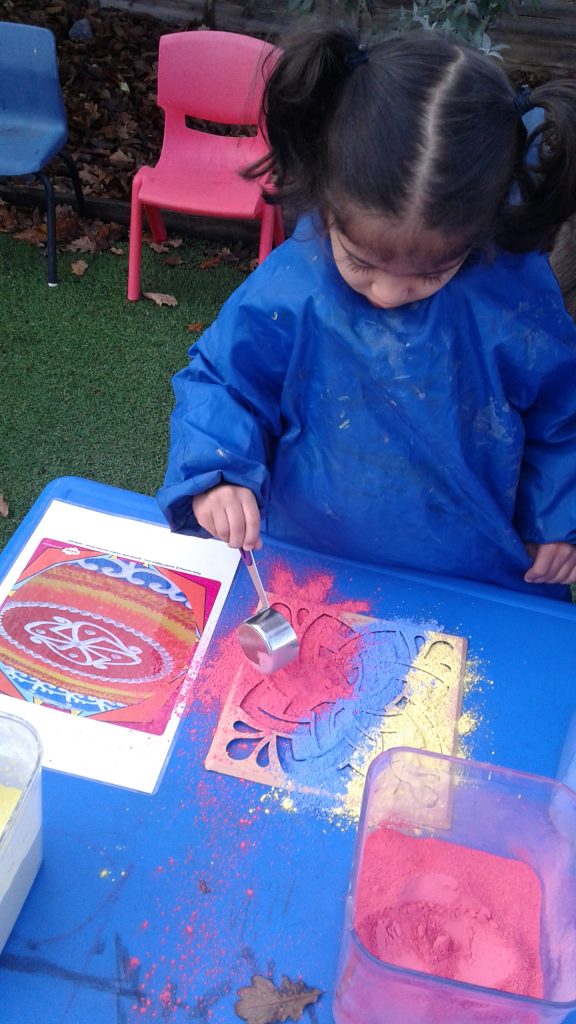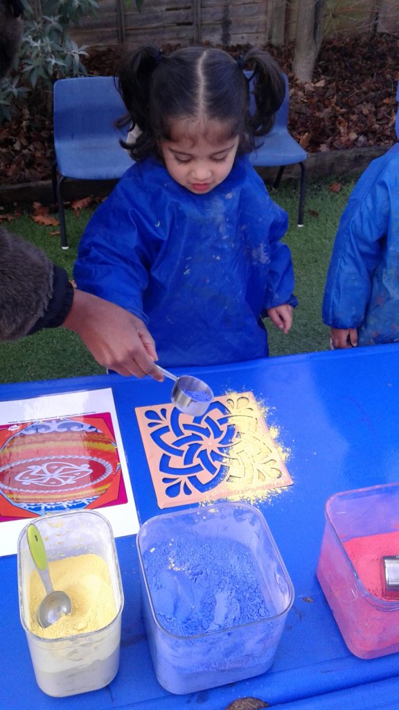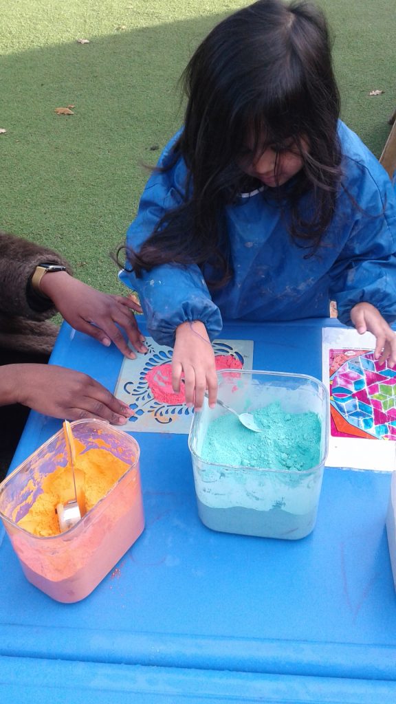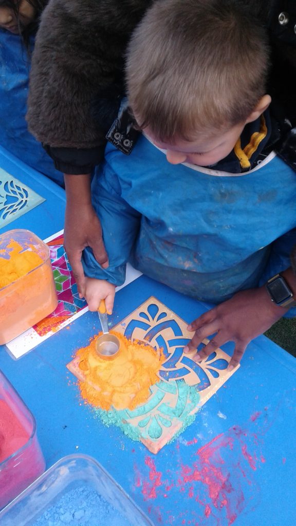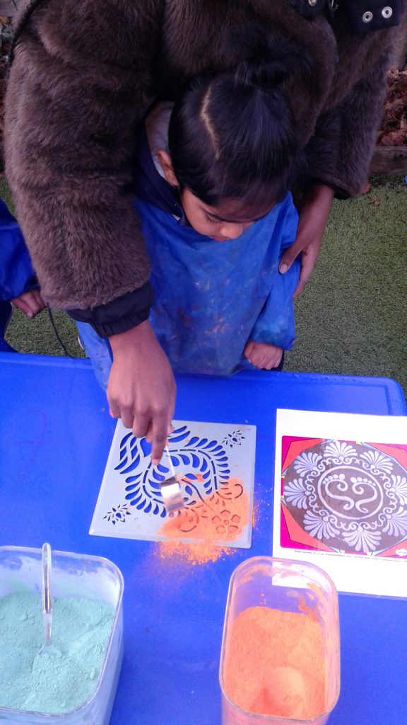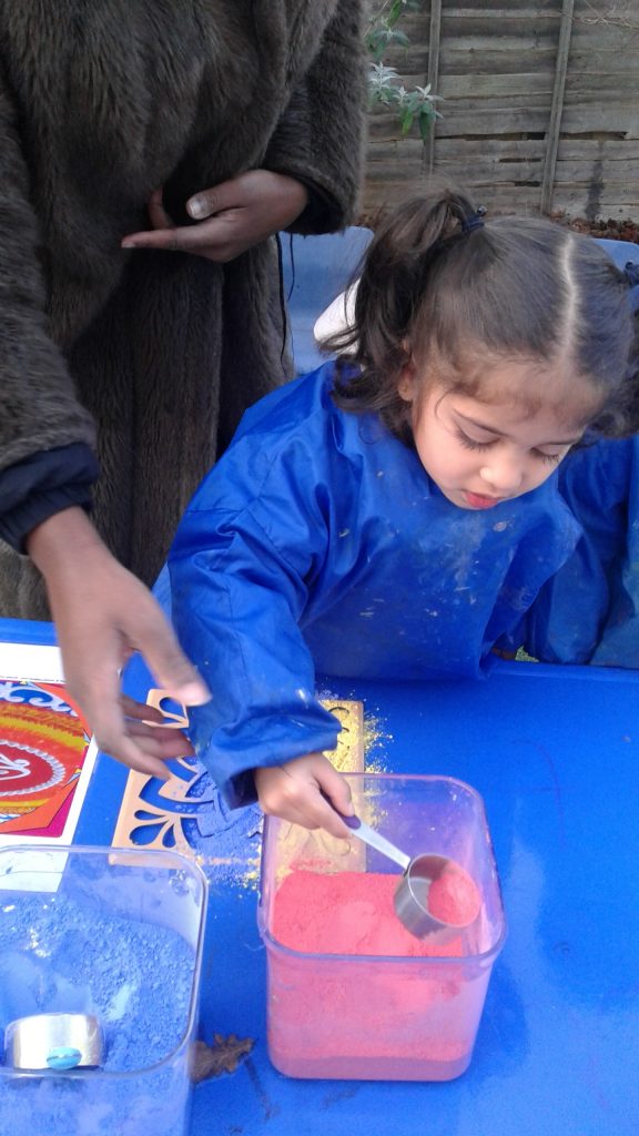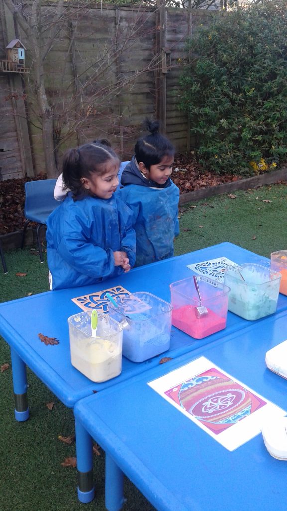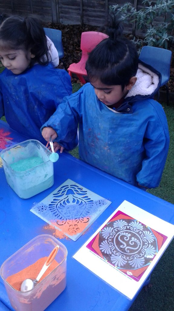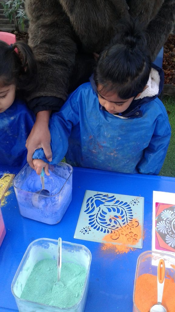 At Leicester the Peter Rabbits made their own little lamps called divas and some Rangoli patterns. They enjoyed mixing various colours for the festival of light.