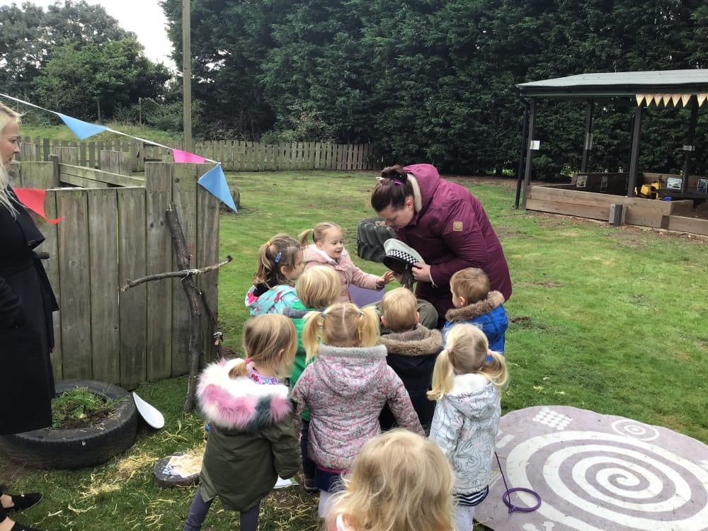 The early years children and parents/carers at our Newark nursery enjoyed a wonderful celebration of harvest. On a lovely Autumn day, the children sang their seasonal songs outside in the garden much to the delight of their visitors. The Peter Rabbits came along to join in with the singing of ‘Dingle, Dangle Scarecrow’ and made us all very proud.