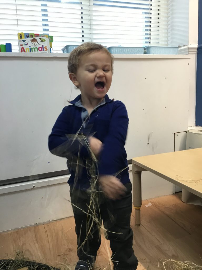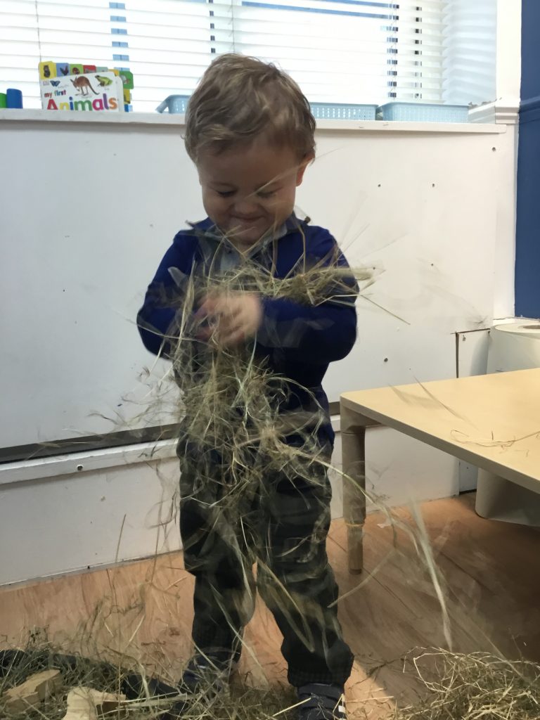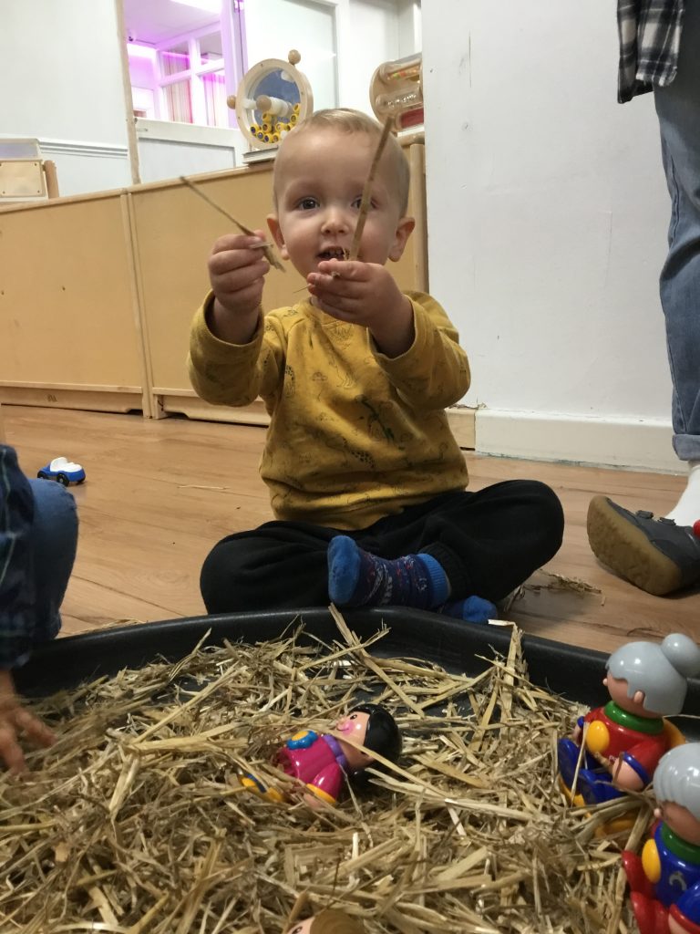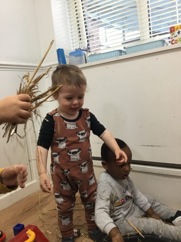 Bobtails Red had so much fun dressing up in farmers’ hats and exploring the farmers’ tuff spot on Harvest Day. They loved feeling the different textures of hay and straw that can be found on farms and watching it float down as they dropped it.