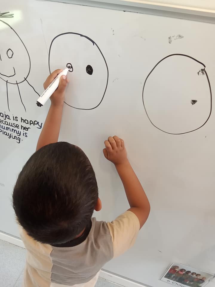 Miss Alice and Early Years have been talking about their feelings, after which, they went on to draw some super self-portraits to express how they were feeling.