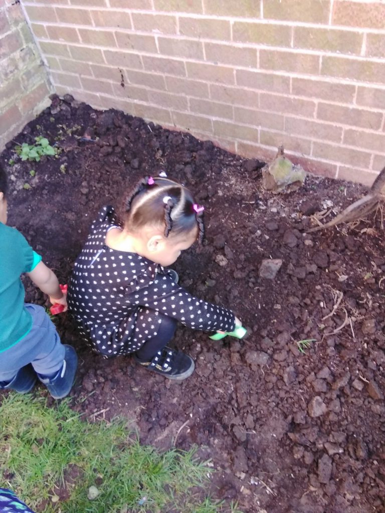 They’ve been talking about the different plants that can be grown in the garden. They spoke about the flowers they see in the garden and their pretty colours.