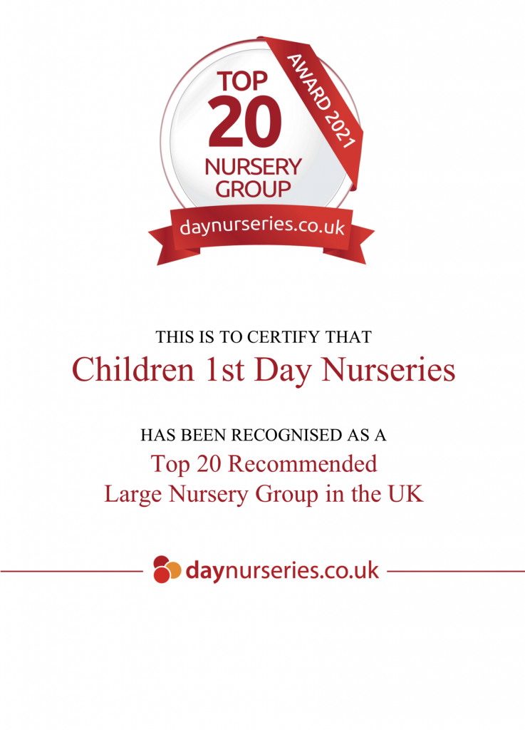 In addition to our three nurseries, the company as a whole has been named amongst the ‘Top 20 Most Recommended large nursery groups in the UK’ with a review score of 9.8 out of 10. The 2021 award makes it four ‘Top 20’ places for the company, having been featured each year since the awards started in 2018.