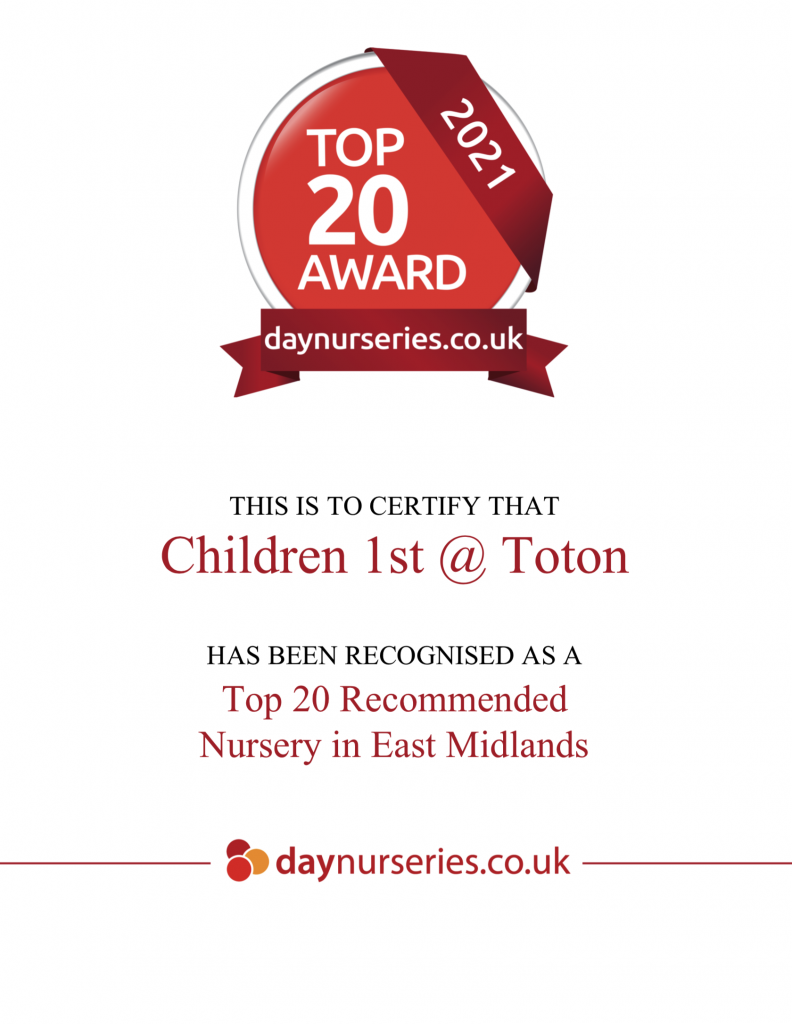 This year, the prestigious accolade goes to our Main Street, Newark and Toton nurseries. Special congratulations to our Main Street nursery who have featured in the ‘Top 20′ since the awards started. Both Main Street and Newark have scored a perfect 10 out of 10!