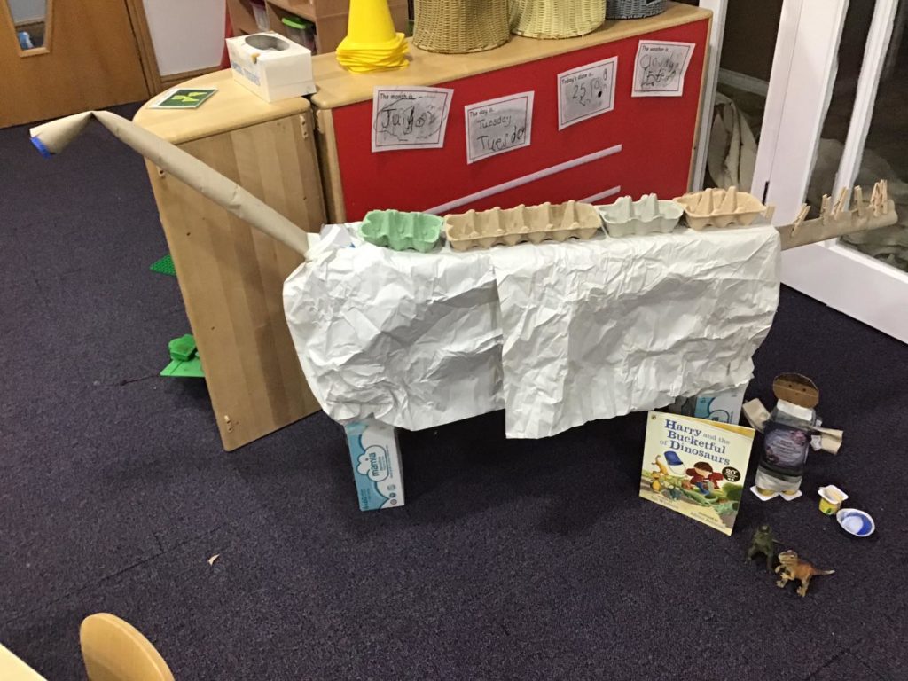 Junk modelling activities have a host of benefits such as encouraging the children to learn more about materials and ways of joining them together to make whatever their imagination inspires them to do. Then there are the benefits of developing communication skills, developing language relating to building, learning to persevere and solve problems and working as a team. When the model is built, the skills of decoration such as painting with various tools and applying other finishes come into play. The whole junk modelling experience is about far more than the finished product, great though that maybe.