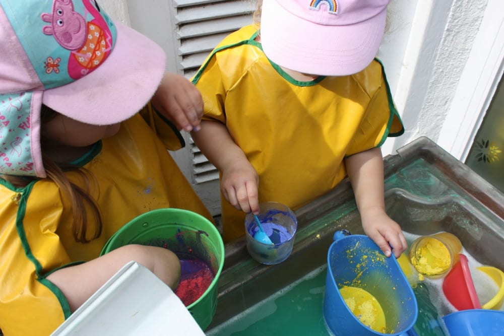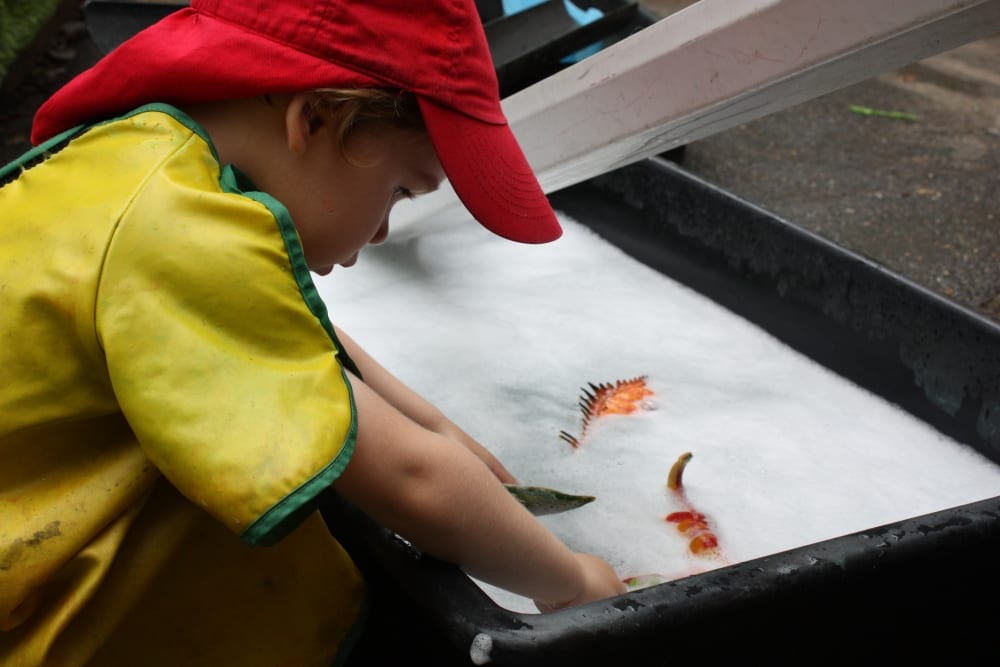 The early years have been exploring colour change in the water tray. They loved seeing the changes as the water cascaded down the channels into the pool of dinosaurs at the bottom!
