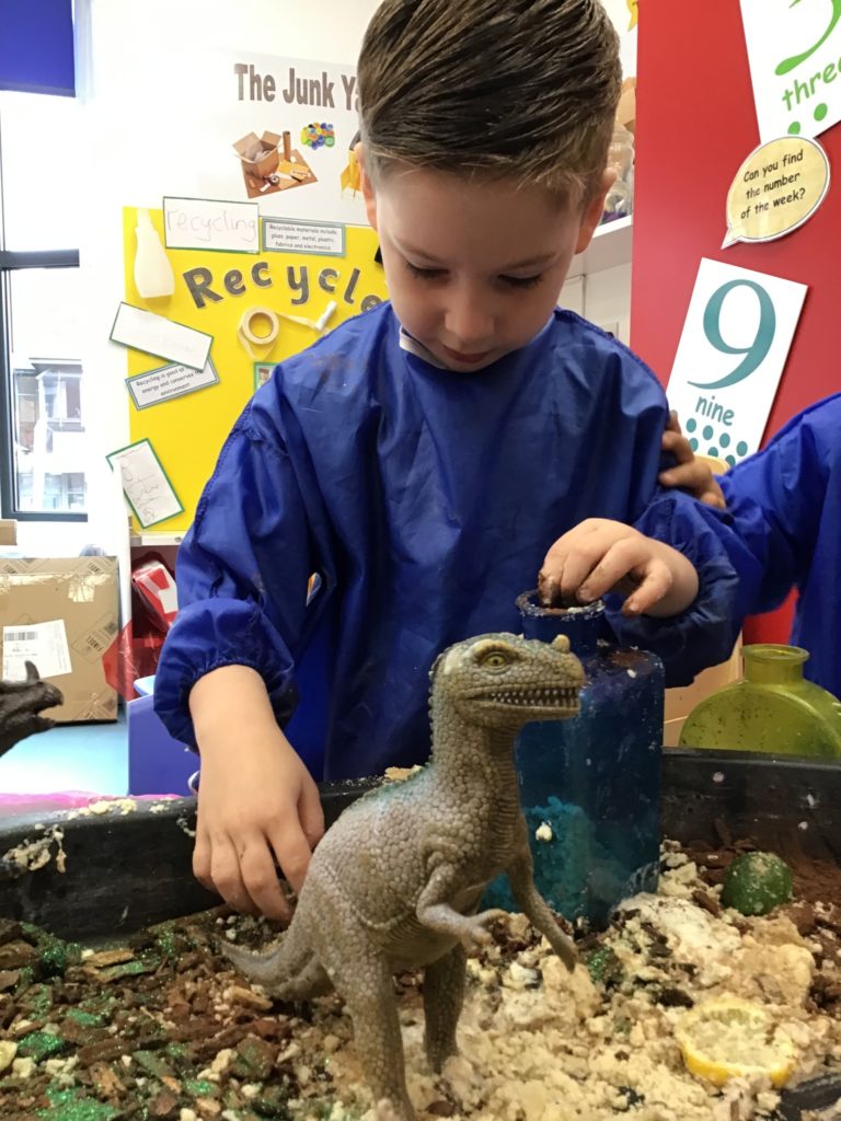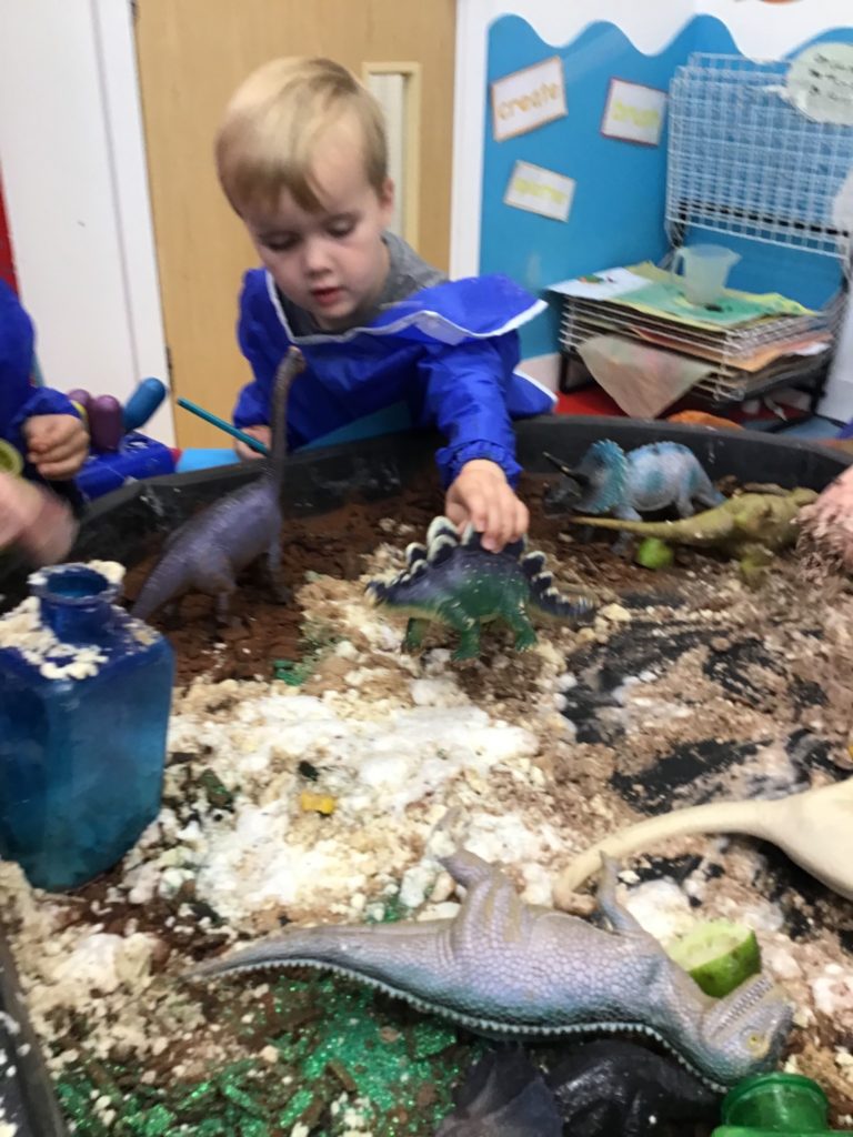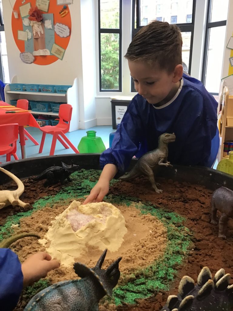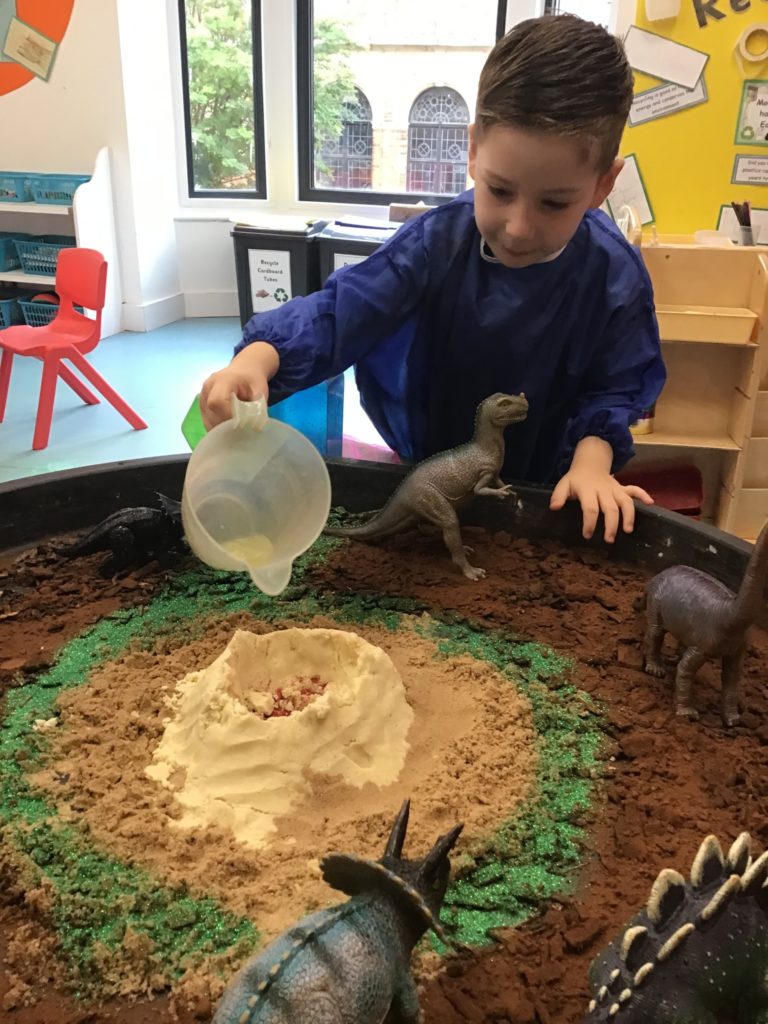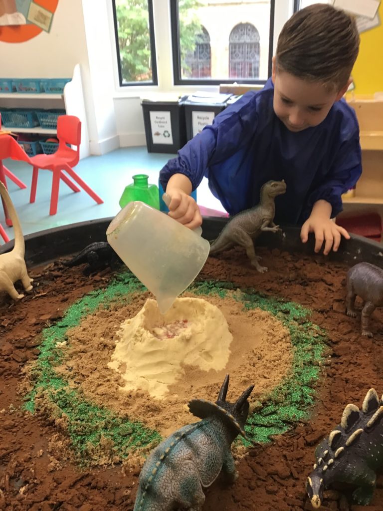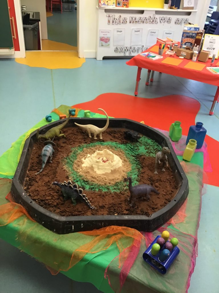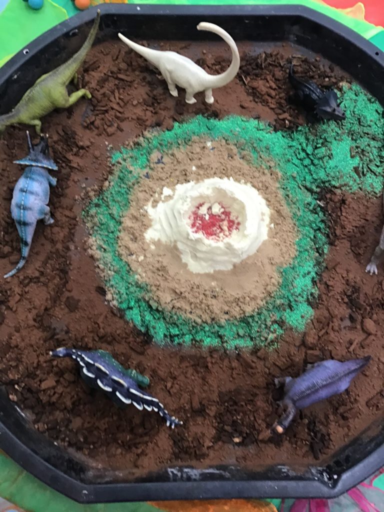 We had the best time exploring the eruption with different tools, as well as using the dinosaurs to explore in the gloop that we had created.