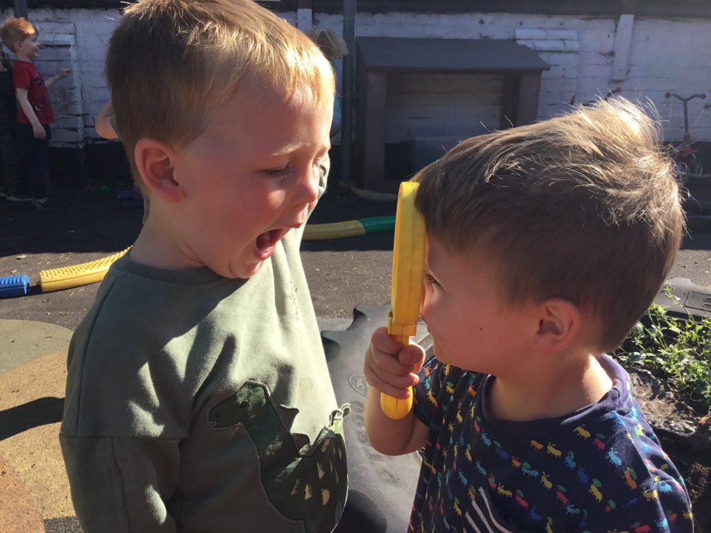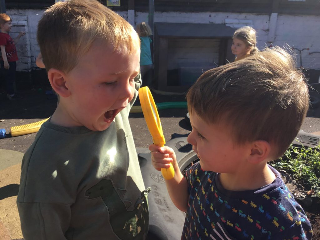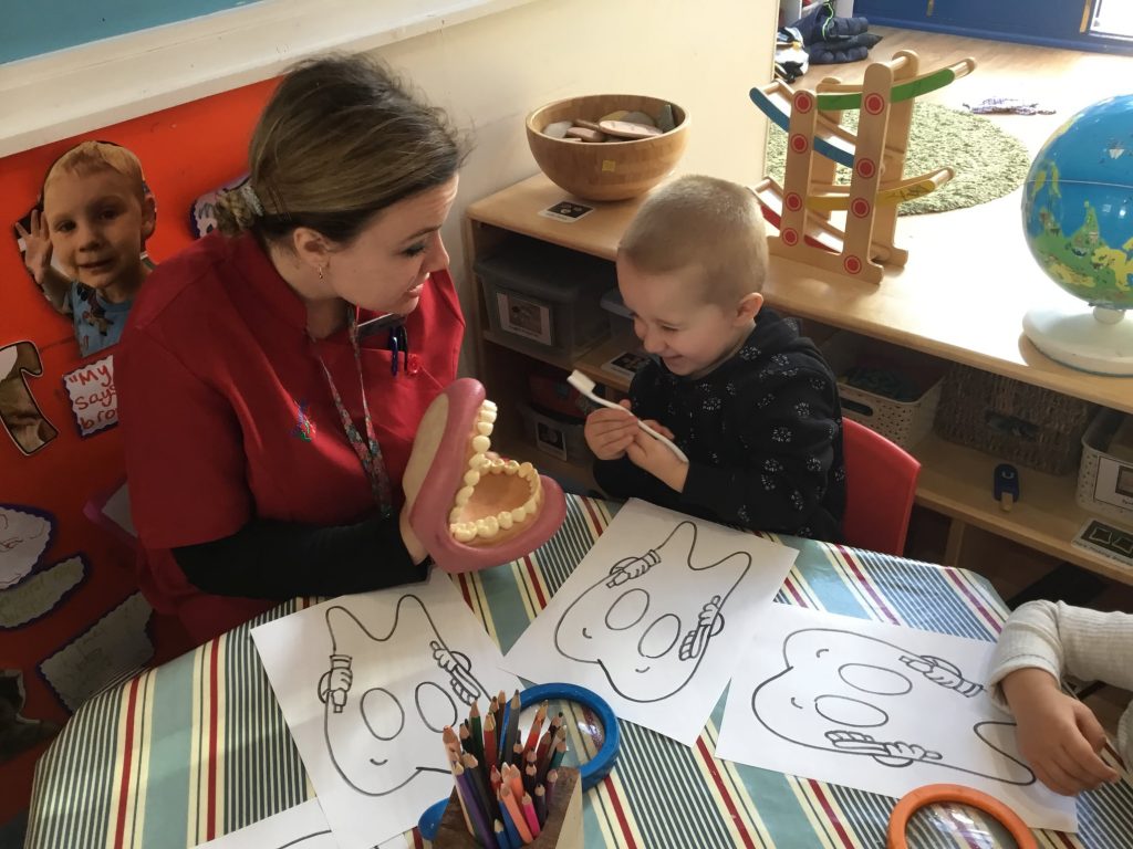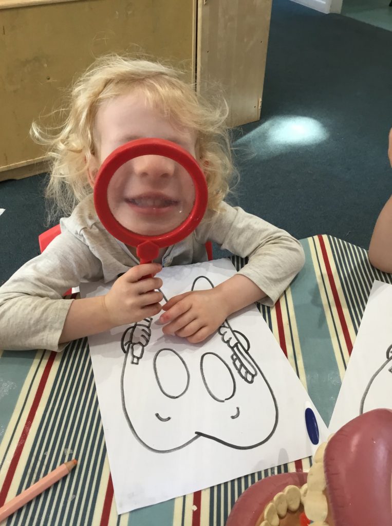 Some of the children were able to talk about when they had visited the dentist and several of the children found the mirrors and proceeded to role play dentist in their play.
