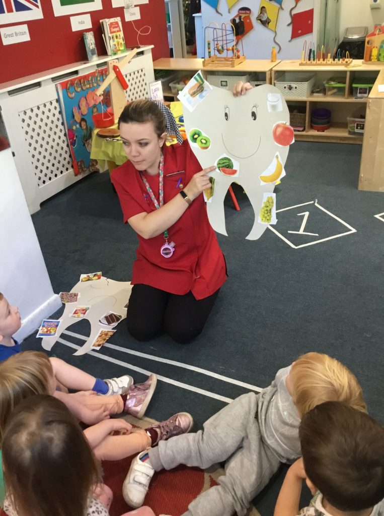 The children continued to talk about their teeth, when they clean them, who helps when doing this and how many times they do this a day.