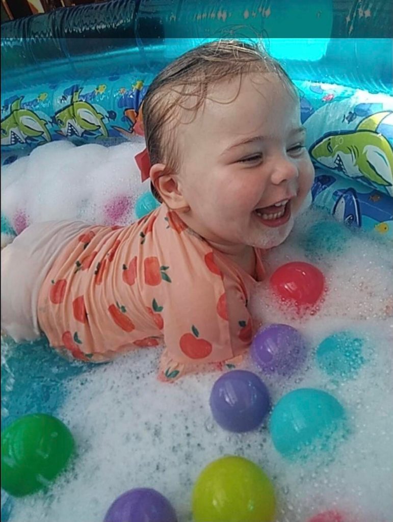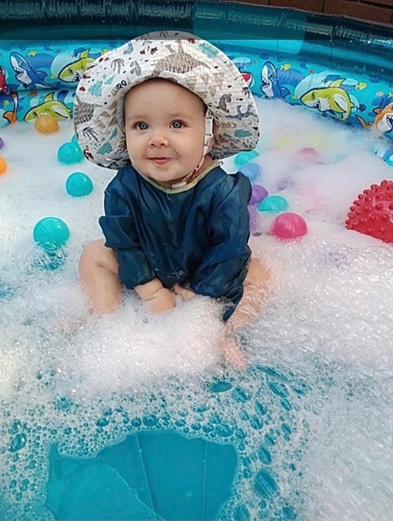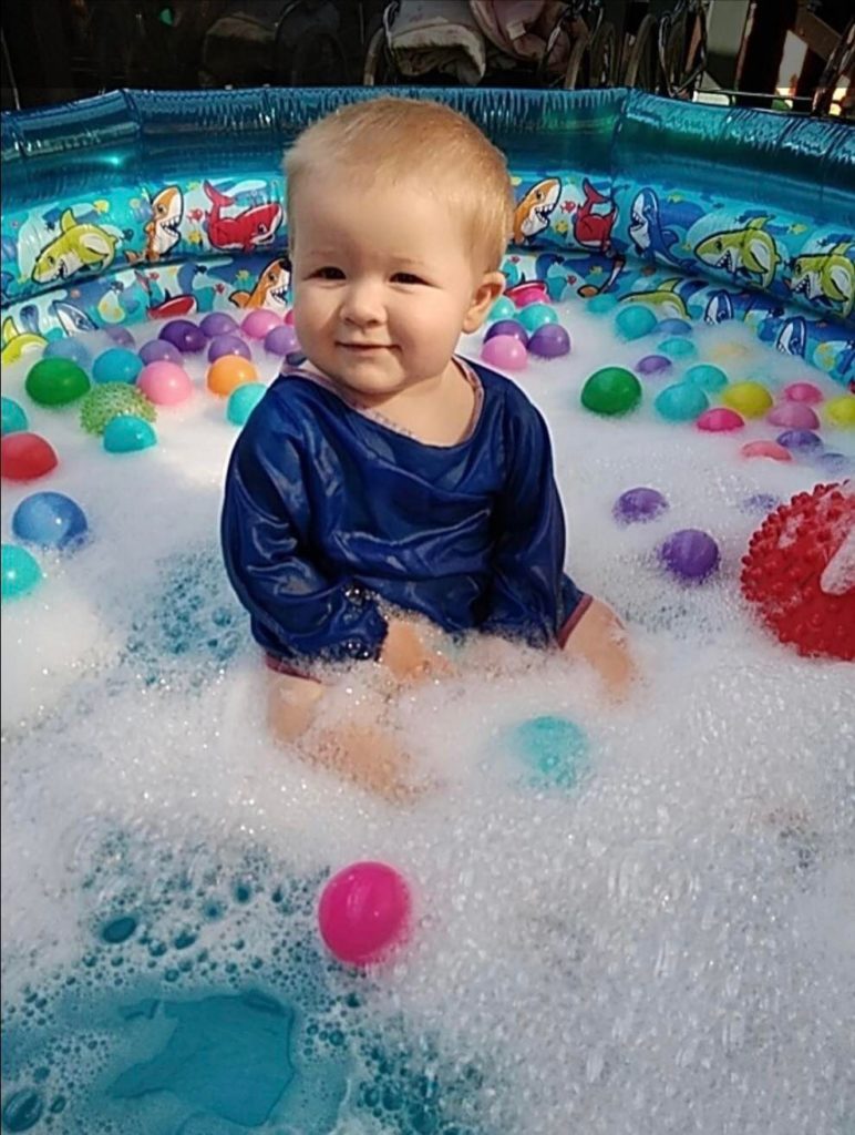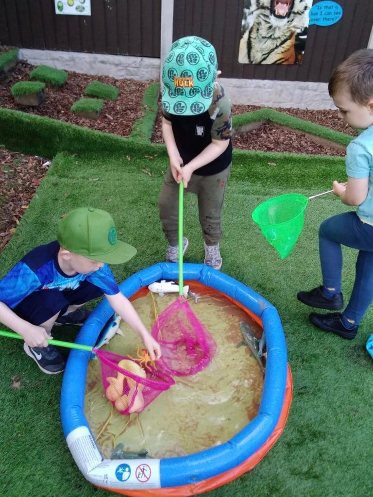 Our under 2s have been cooling down in the paddling pool. They’ve had lots of fun splashing in the bubbles and looking closely at the coloured balls.